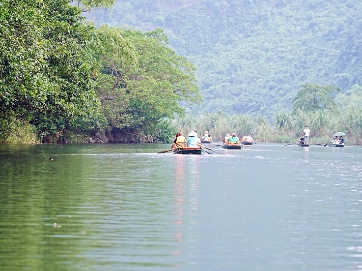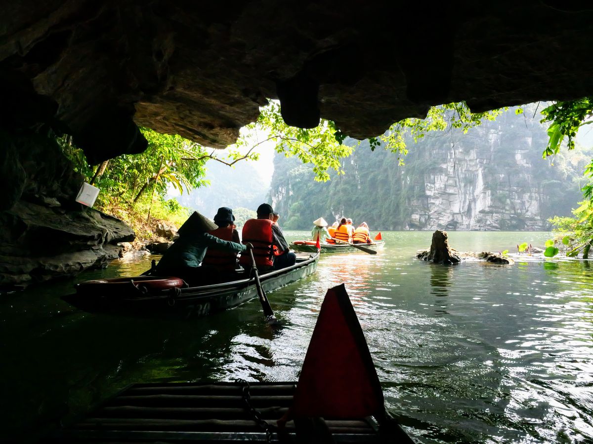 ・チャンアン:大きなクルーズ船に乗るハロン湾と違い、小舟で視線が川面に近づくのが新鮮。途中の洞窟も楽しく、1時間半はあっという間。