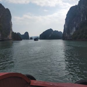を聴きながらうとうとしてました。乗り心地はとても良かったです。クルーズ船は日本人専用だったので。安心感がありのんびりと食事が出来ました。食事も美味しかったです。ハロン湾の景色は海の桂林に近いイメージです。観光船の多さには驚きます。
