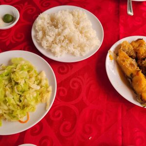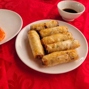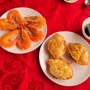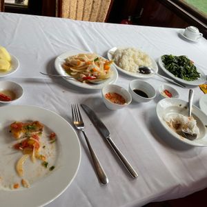 ハロン湾の雄大な絶景を眺めながら、エビやイカなどの海鮮をサーブしていただき、美味しい揚げ春巻きも出てきて、とても優雅でおいしい時間を過ごしました。