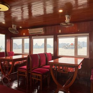 ハロン湾に待っていたのは、リニューアルしたばかりのとても美しい観光船!とてもラッキーなことに、この日の乗客は私たちだけでした。