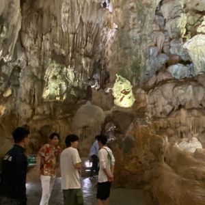 案の定、行きの移動中に子どもが眠たくなり泣いてしまいましたが、周りを気にせずあやすことができて本当によかったです。鍾乳洞でも私たち家族にガイドさんがついていてくれたので、しっかり観光できて楽しかったです。ガイドさんからベトナムの歴史や文化を教えていただきました。私たちのペースに合わせて説明していただいたので、いろんなお話をしっかり聞けたのがよかったです。また、私たち家族の写真も撮ってくれたのでとても助かりました。お昼ご飯はシーフード多めのベトナム料理でしたでとてもおいしかったです。