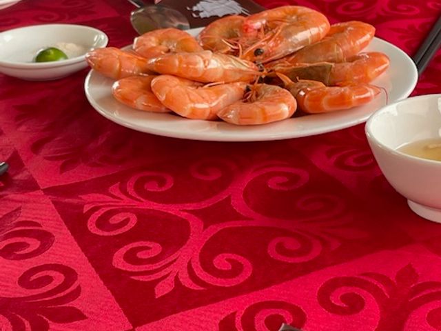 やっと乗船すると早速豪華なシーフードランチ(コレは合格)