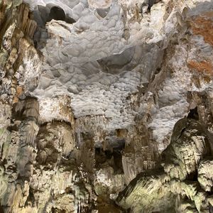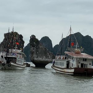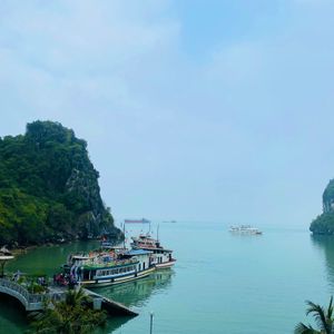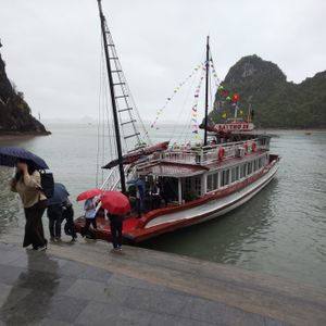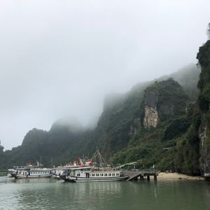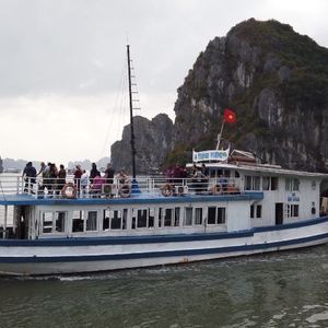 大学の卒業旅行として友達6人で参加しました。ホテルのロビー集合のため、非常に朝の出発も安心でき、大満足のツアーでした。バスでお寺や市場を散策した後にクルーズで、クルージングの時間はそんなに長くありませんでした。しかし、とてもおいしいシーフード料理がたくさん食べられ、楽しい昼食でした。友達6人で同じテーブルに座ることができ、融通の利くスタイルで助かりました。天候としては、霧がかかり、快晴とは言えませんでしたが、デッキで写真を撮ることができました。船が大きく揺れることもなく、参加者みなが酔うことなく楽しめていたように感じました。楽しみにしていた鍾乳洞は期待以上のものでした。ベトナムに鍾乳洞というイメージはありませんでしたが圧巻でした。初めての鍾乳洞が良い思い出になりました。添乗員の方の日本語がお上手で、ツアー全体が日本人だけであったことも安心して楽しめた要因の1つです。