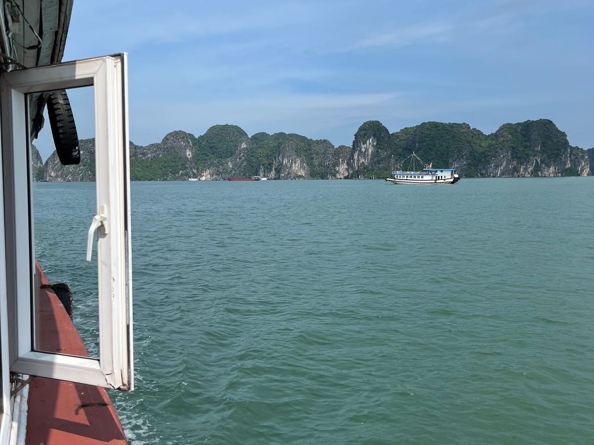 を聴きながらうとうとしてました。乗り心地はとても良かったです。クルーズ船は日本人専用だったので。安心感がありのんびりと食事が出来ました。食事も美味しかったです。ハロン湾の景色は海の桂林に近いイメージです。観光船の多さには驚きます。