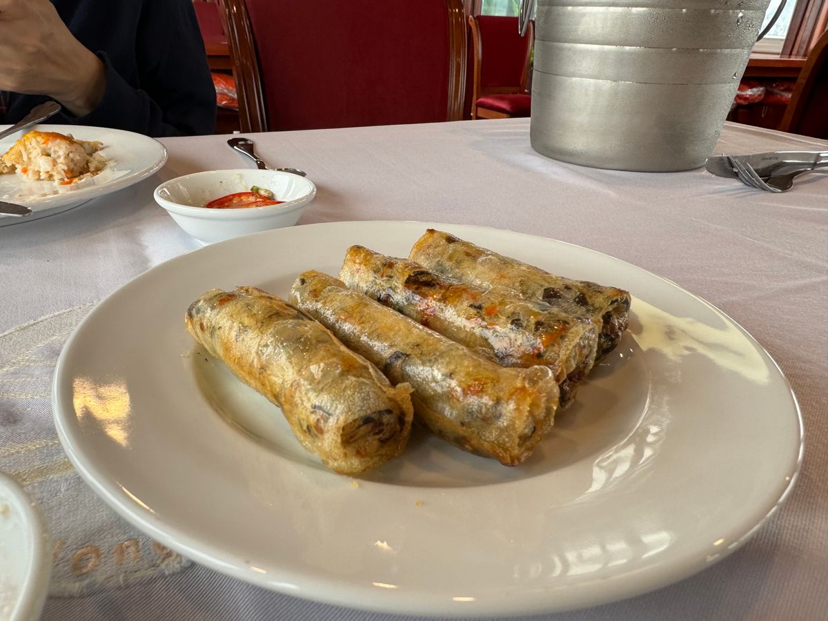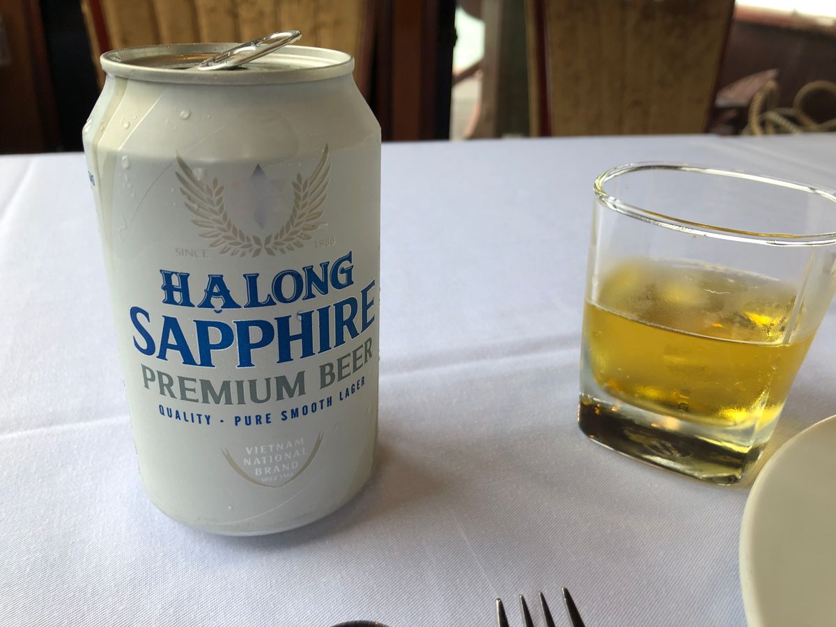 ハロン湾の雄大な絶景を眺めながら、エビやイカなどの海鮮をサーブしていただき、美味しい揚げ春巻きも出てきて、とても優雅でおいしい時間を過ごしました。