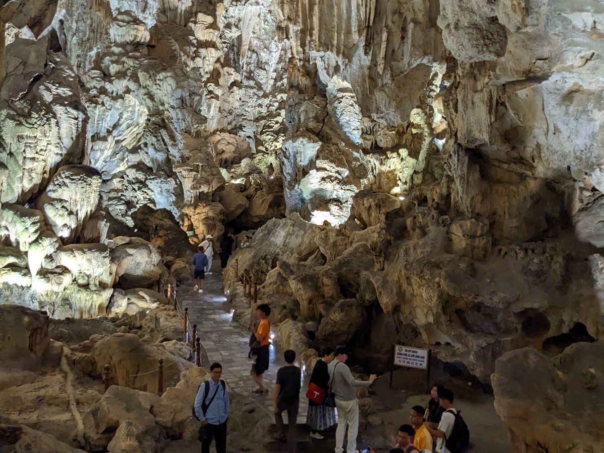 案の定、行きの移動中に子どもが眠たくなり泣いてしまいましたが、周りを気にせずあやすことができて本当によかったです。鍾乳洞でも私たち家族にガイドさんがついていてくれたので、しっかり観光できて楽しかったです。ガイドさんからベトナムの歴史や文化を教えていただきました。私たちのペースに合わせて説明していただいたので、いろんなお話をしっかり聞けたのがよかったです。また、私たち家族の写真も撮ってくれたのでとても助かりました。お昼ご飯はシーフード多めのベトナム料理でしたでとてもおいしかったです。