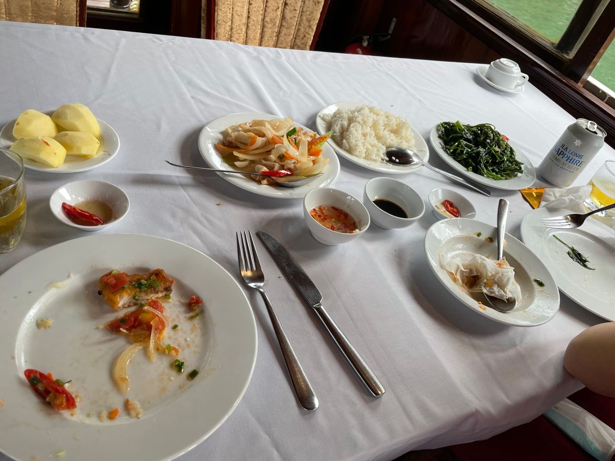 ハロン湾クルーズは海鮮コース料理で大満足。船上ではスタッフが熱心にサービスを提供してくれました。きれいなトイレもります。