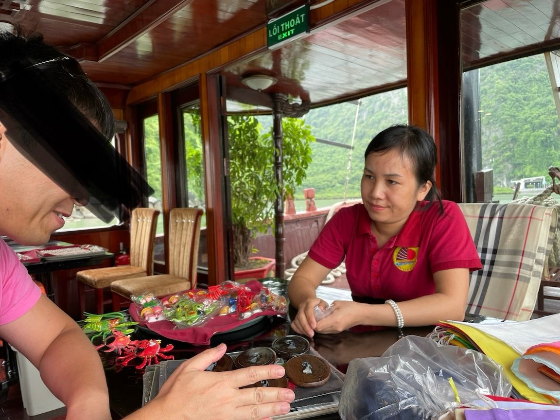 1歳の子どもと一緒に参加しました。ハノイからハロン湾まで長時間かかるため子どもが大型バスに乗っていられるか不安だったので、こちらのツアーを選びました。