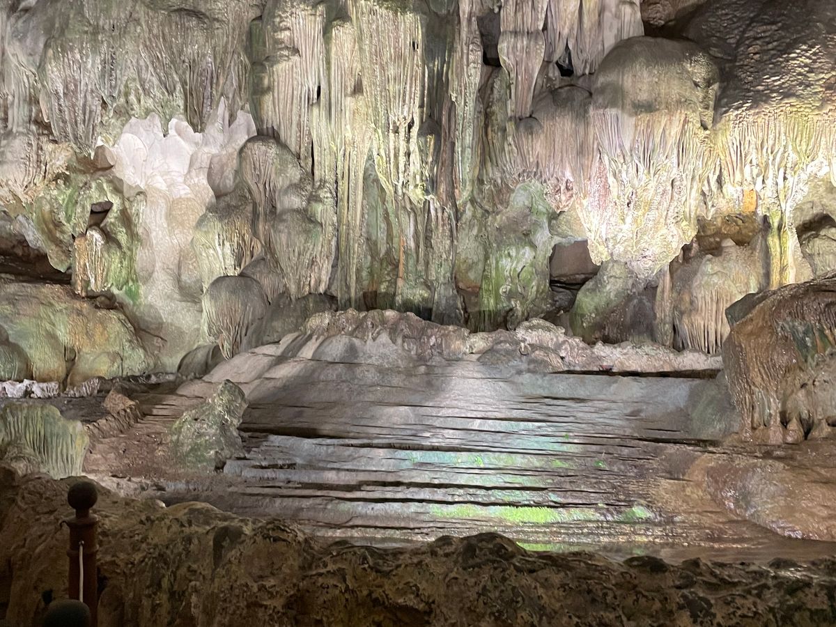 洞窟は階段を上がるのでヒールではない方が良いと思います。今まで見たことがないくらい見渡す限りの鍾乳洞で、その迫力に驚きました。