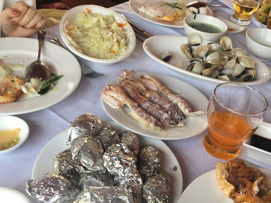 食事は各テーブルでシェアする形なので、周りのグループの人達に少し気を使うところはありました。カニの料理が1番美味しかったです。食後のデザートにバナナも出てきました!