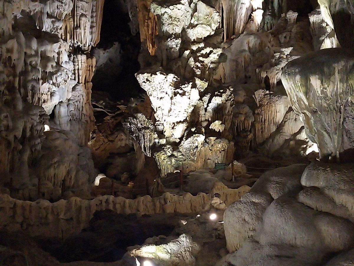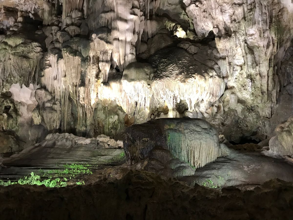 途中船を降り、洞窟へ向かう。洞窟まで階段が続くので歩きやすい靴が良い。私の前行くヒールの靴を履いた女性がこけていた。洞窟は天井が高く見事だった。