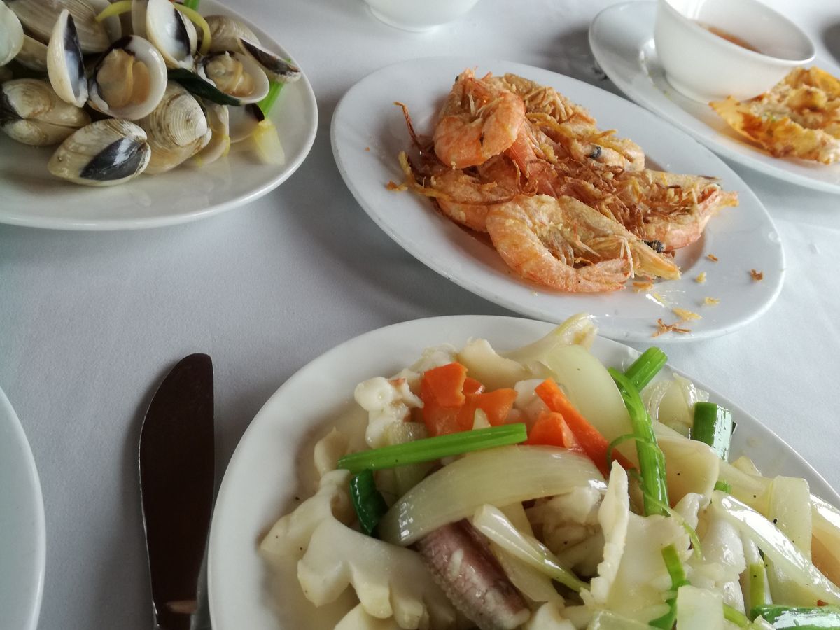 船に乗るとすぐ食事が次から次に出てくる。結構美味しい!食べるほうに集中すると景色が・・・景色を見てると食べるほうが・・・