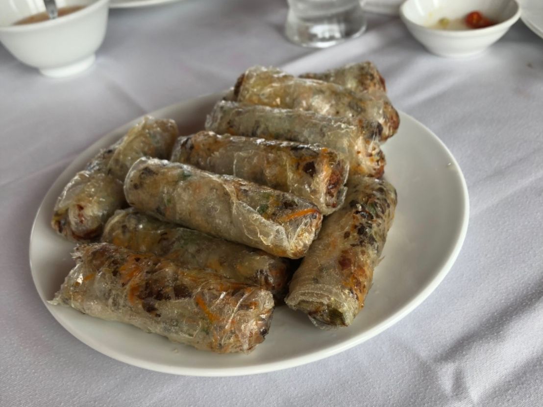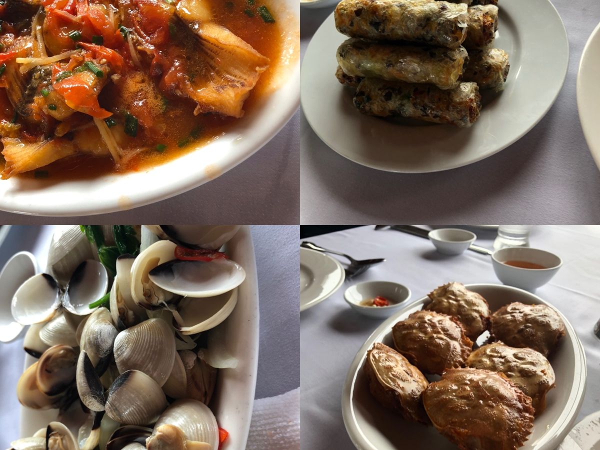 船に乗ったらすぐ昼食です。どんどん運ばれてくるご飯をテーブルごとにシェアするスタイルでしたが、とってもお腹いっぱいになりました。