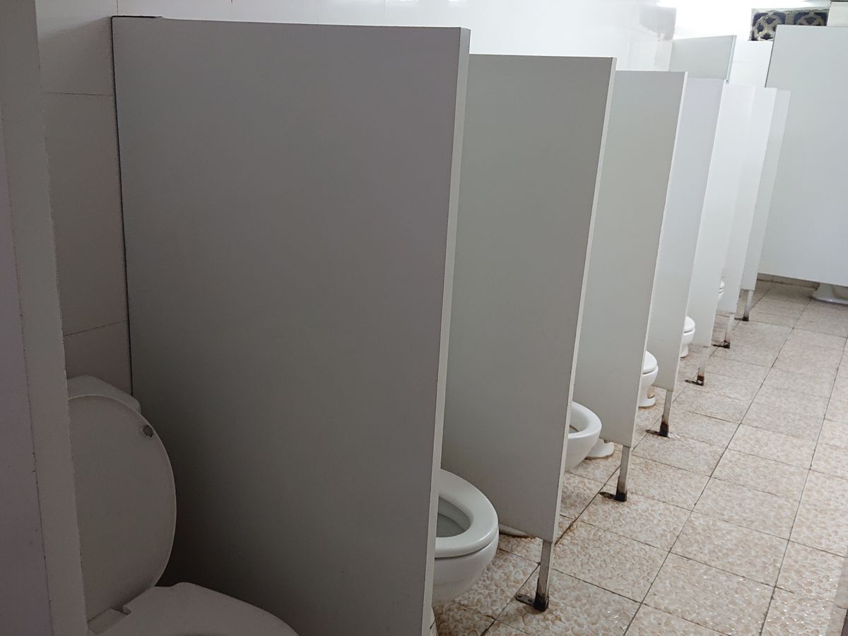 立ち寄ったお寺でトイレを借りましたが、扉がなく便器が並んでいて驚きました!でも奥に個室が3つあって安心して使わせてもらいました。
