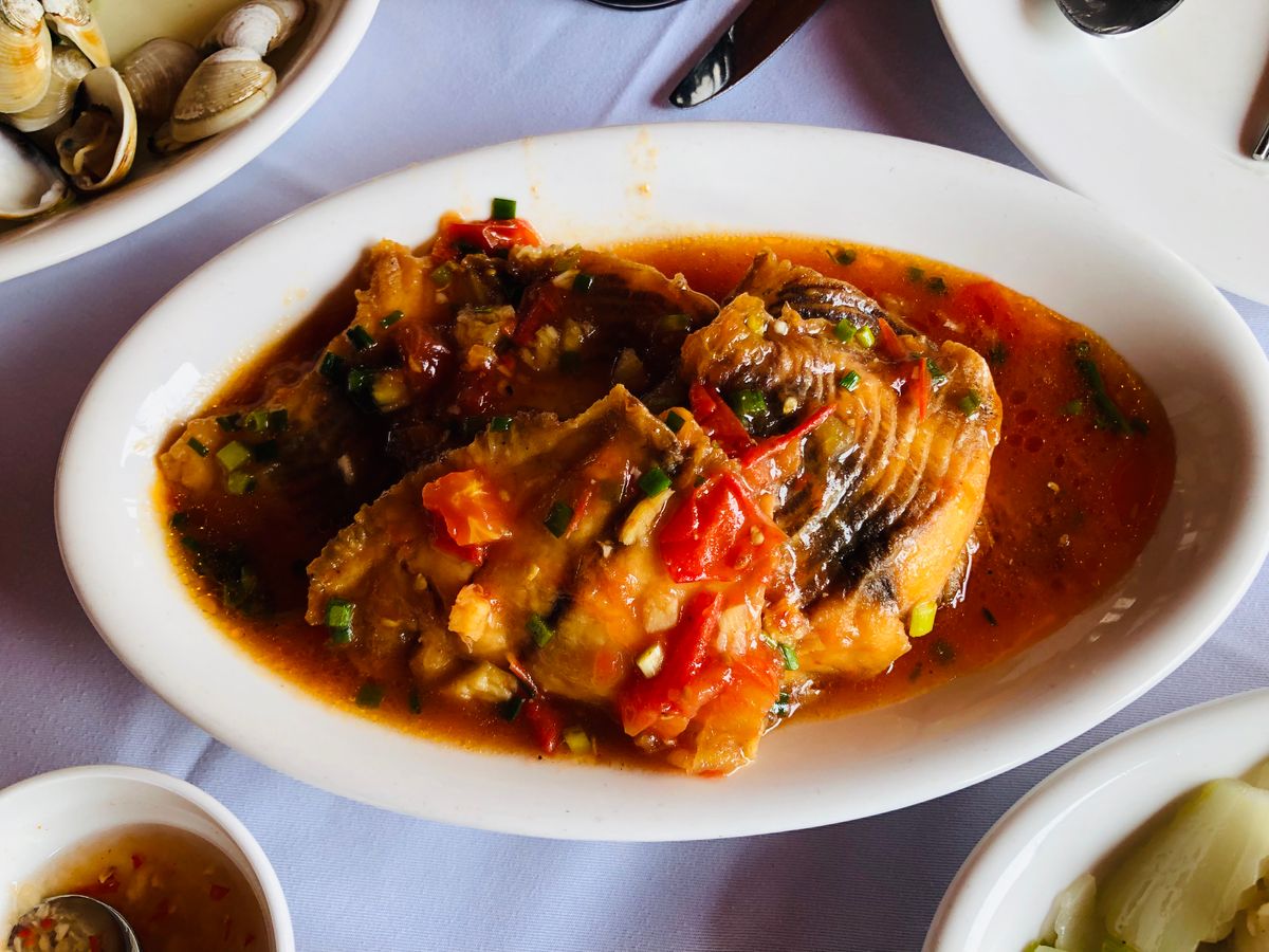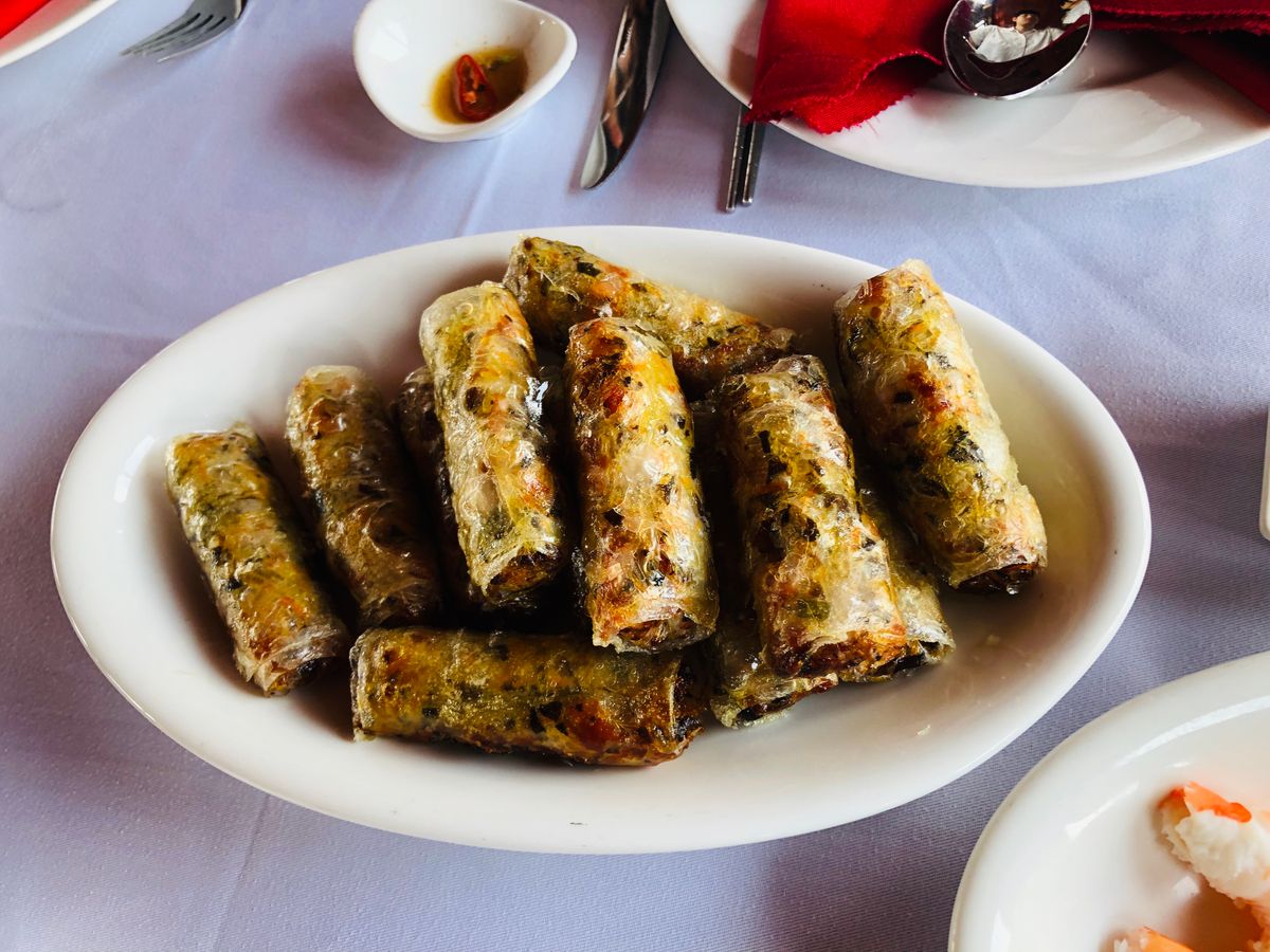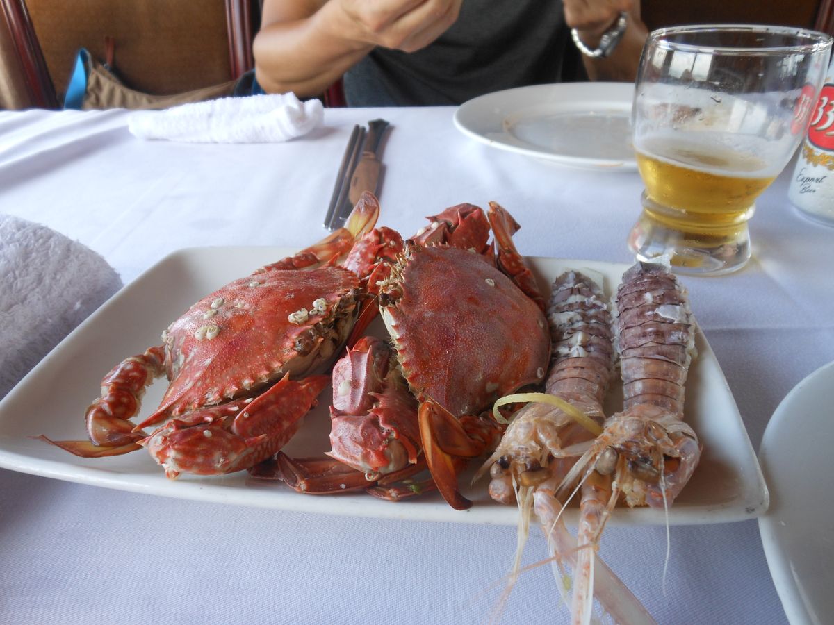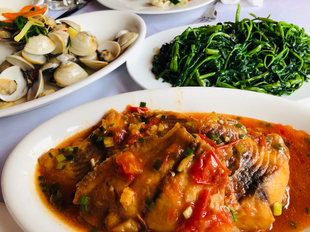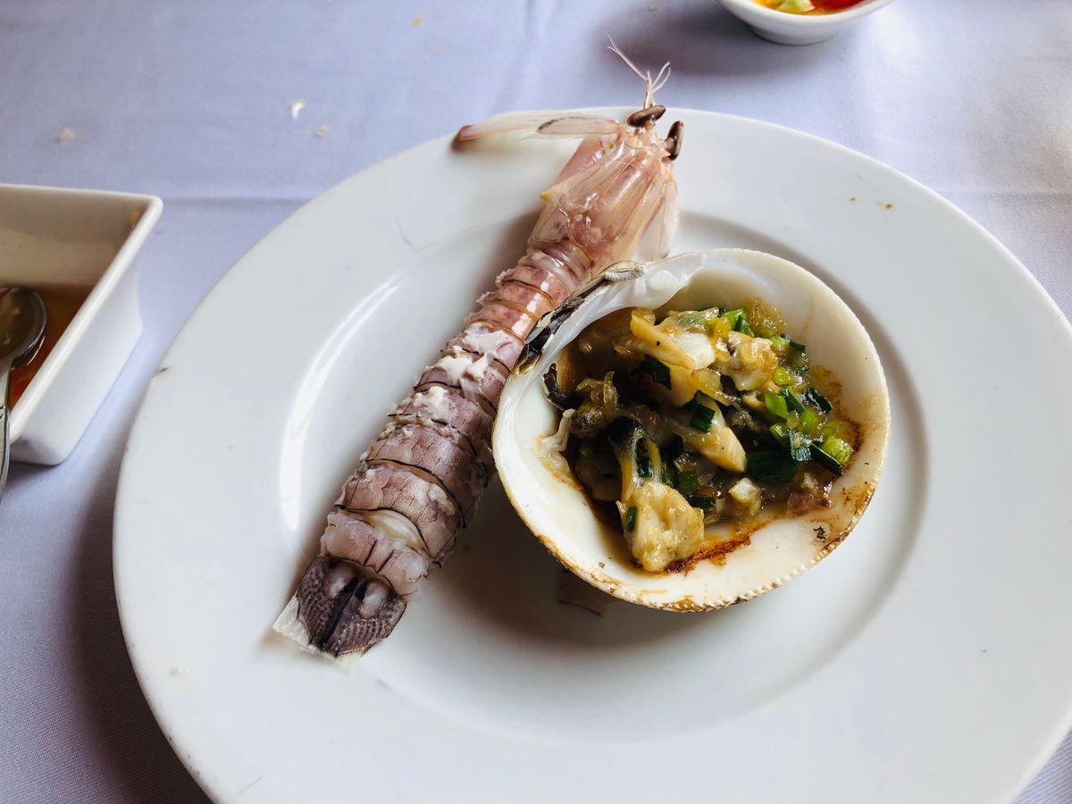 昼食は船の中で海鮮料理、夕食は雰囲気の良い店で、美味しかったです。