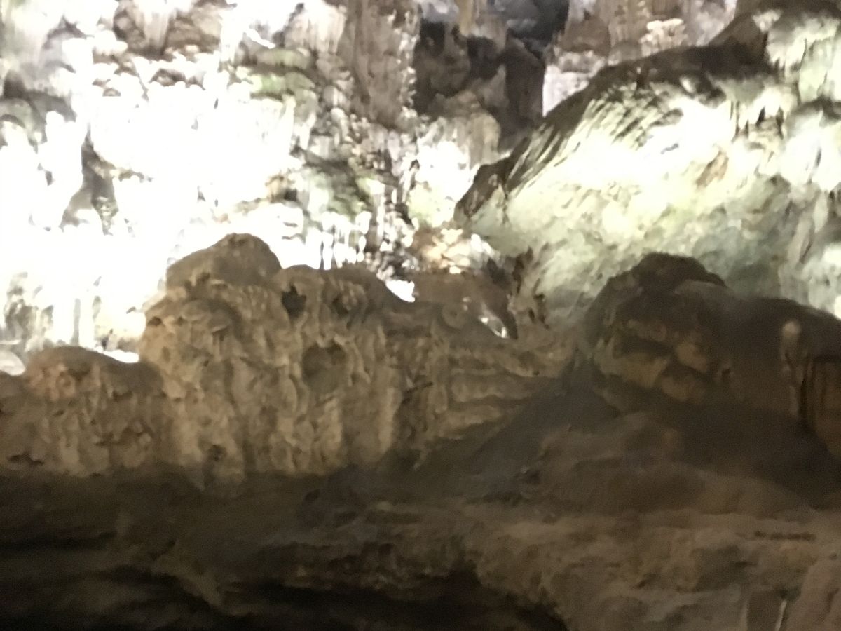 途中で鍾乳洞見学があり当初は期待していませんでしたが、中に入ってビックリ、広く長く鍾乳洞が続いたおり、ライトアップされてとても感動しました。