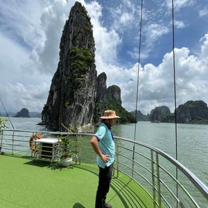 二回目のハロン湾でした。天気は曇り時々雨で正直一回目には劣るだろうと思ってましたが、ガイドさんの話の面白さ人柄の良さ、船の女性も親切、笑顔で押し売りもなく楽しいツアーにしてくれました!そして曇りのハロン湾もいいものでしたし、差し込む光の関係で洞窟の見え方も違いこれもまた良かったです!また帰りのトレインストリートも素敵でした!