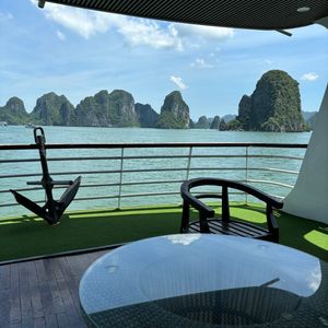 40人乗りの船に私たち2人の他、あと2人。合計4人でのクルーズは快適でした。(会社は赤字でしょうが…)ガイドさん曰く、今は日本人全然来ない、とのことです。このガイドさんがハノイ市内からハロン湾に向かう車中、ベトナムやハノイの歴史を一生懸命説明してくださって、とても勉強になりました。ランチも美味しかったし、クルーズも鍾乳洞も想像以上によかったです。トレインストリートでバスを下車後、電車を見る良い店も紹介してくれました。それも込みで考えると、価格以上の満足度です。