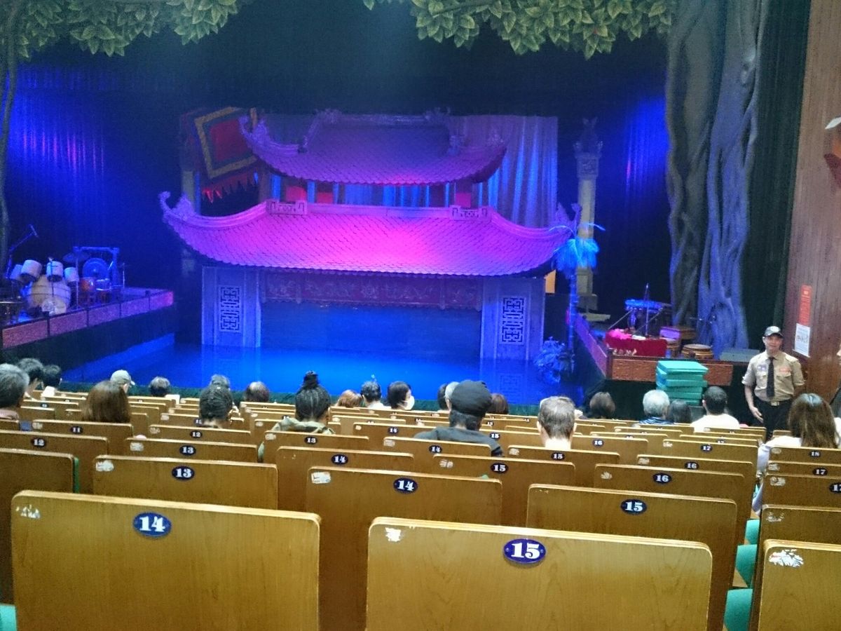 劇場が宿泊していたホテルから、丁度良い散歩コースの感覚で行けたので無料で貰えたお得感が増しました。劇そのものは、場面毎の一幕もの仕立てで、ホーチミンでみた物語性のとは違っていました。やはり、地方によって違うのだろうなと思います。無料なので、席も期待していなかったのですが、結構前の方の席でしっかり見えました。水だけでなく、火も使われていて迫力が有り、一見の価値は有ります。