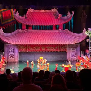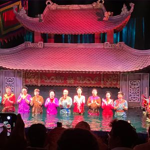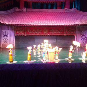 水上人形劇を万博のデモイベントで見て以来、本場で見てみたいと思い参加しました。1話5分程度が10話ほどあります。演奏者もライブですし、とても良かったです。ぜひ最前列で鑑賞してください。ハノイに来たらオススメです。ただ、ホアンエキム湖の横にあるのですが、人やバイクが雑然としており、入口が分かりにくいです。案内には30分前に近くにある旅行社でチケット交換してから、入場してと案内されているのですが、交換場所がありません。チケット売場の方に聞いても、ここじゃないとしか教えてもらえず、案内係らしき人に尋ねると、10分前にチケットを持って来て交換する人が来るから待てとの事。他の国の方々もわからず聞いてたので、案内看板を出すべきですね。そういう配慮や準備が全く整備されていないのが、今後の課題かなと思いました。