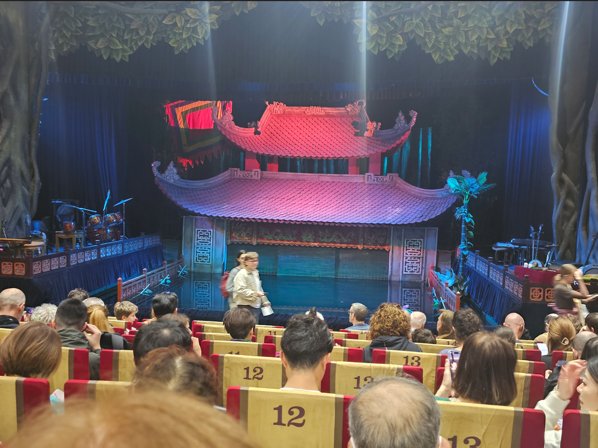 2ケ月前に予約しましたが5列目でした。1列目にアサインされてる方はいらっしゃるんでしょうか。年末ということもあり大混雑だったので予約をおススメします。チケットの交換場所は非常に分かりにくいです。スマホで地図を見ながら歩きにくい道を縦断するのである程度ハノイに慣れたあとで組むのが良いと思います。grabで直接指定しても良いです。静かに鑑賞するタイプのものではなく、笑ったり手をたたいたりするざっくばらんな雰囲気。私は映画でも席を蹴られたりひじ掛けを両方とられたりするのがとても気になるため5分後には早く終われと祈っていました。人形の動きはコミカルで、分かりそうで分からないオーディオガイドの日本語も面白く、まるっと文化に触れるには非常におススメです。