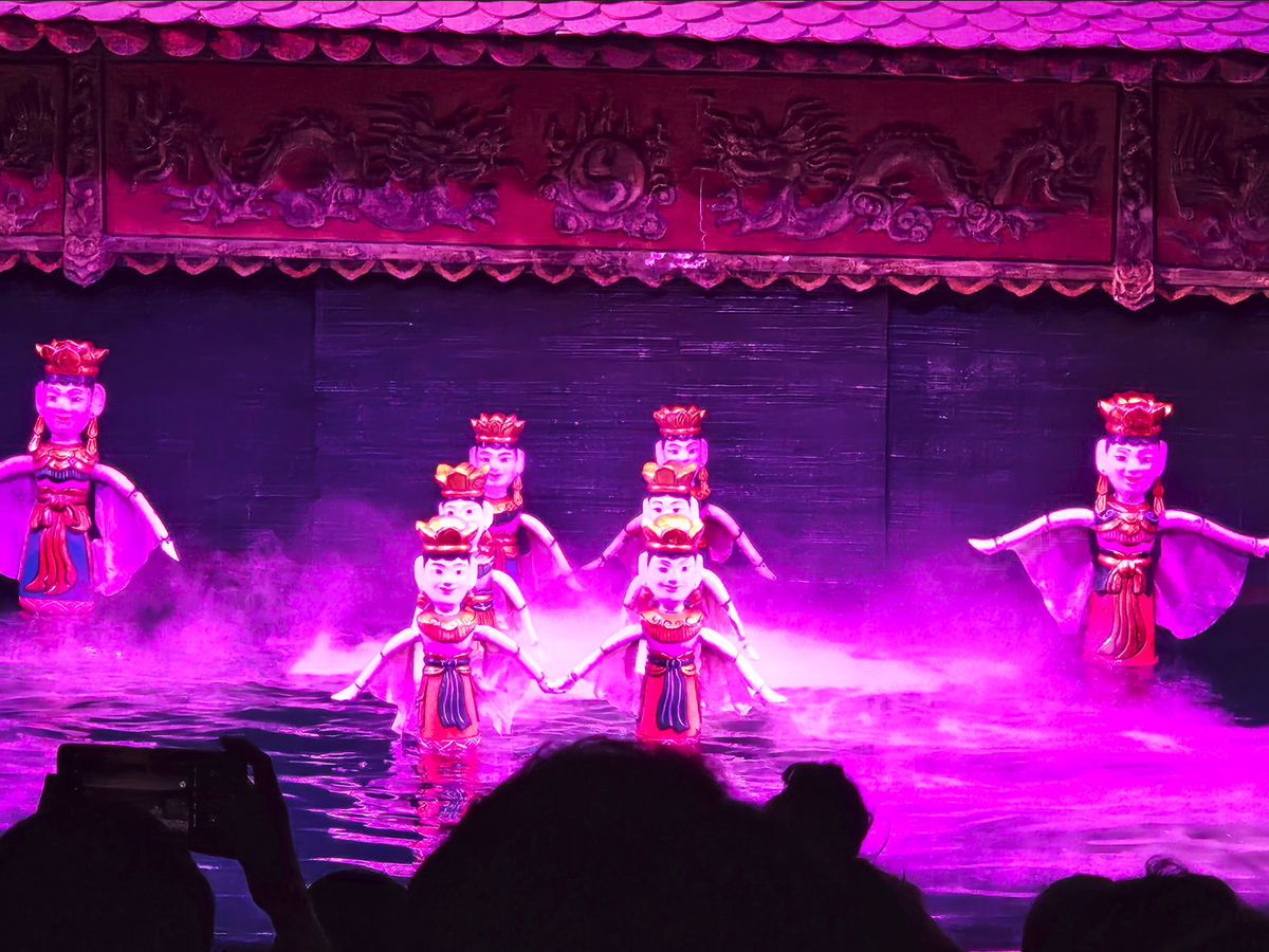 ヴェトナムを舞台にした映画で主人公が観劇に行くシーンを見てから、自分も実際に見てみたいと思っていました。今回ハノイに行くことになり、迷わず事前チケットを予約しました。感想としては、見に行って大正解でした!水上で人の手によって動かされる人形、楽器と歌声の美しい音色とすべてが合わさって出来上がる、伝統芸術に圧倒されました。音声ガイダンス付きで見ることもできるようでしたが、私はガイダンスなしでも十分に楽しむことができました。またハノイへ行くことがあったら、ぜひリピートしたいです。事前チケットの交換窓口は、実際に水上劇を見るシアターとは徒歩圏内ではありますが、少し離れた場所にあります。私は18時半からの回でチケット交換は、3時間ほど前くらいに行った気がします。それはたまたまでしたが、最前列に座れたので、チケット引換が早ければ早いほど前の席に座れるのかもしれません。