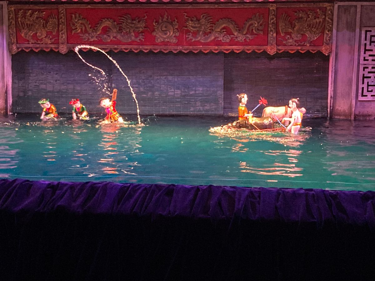 ベトナムの楽器を使った生演奏と歌に合わせて短い水上人形劇が何編も展開していきます。言葉がわからなくてもストーリーがわかり楽しめました。人形の動きが生き生きしていてよかったです。一番前の席だったのもよかったです。