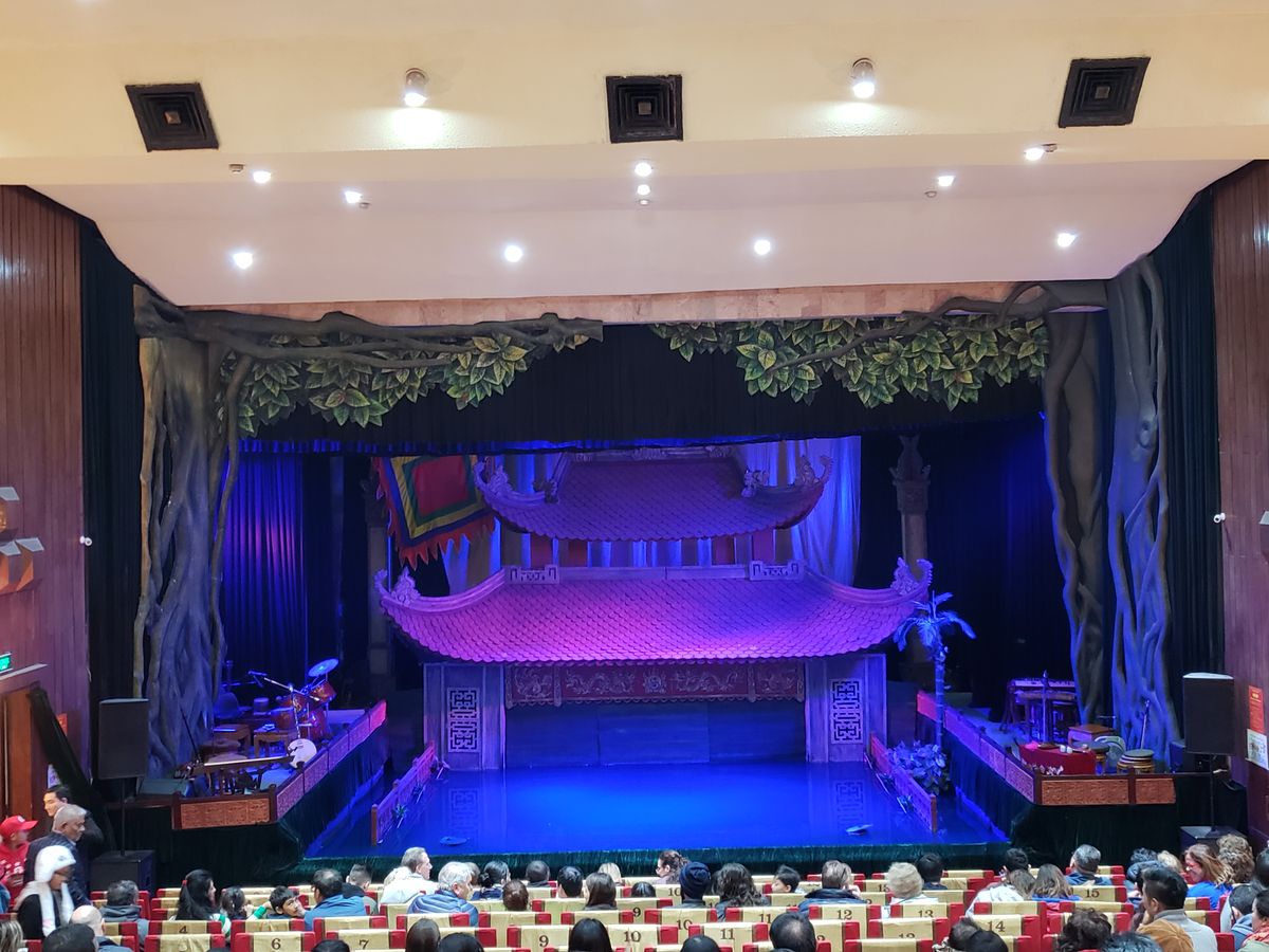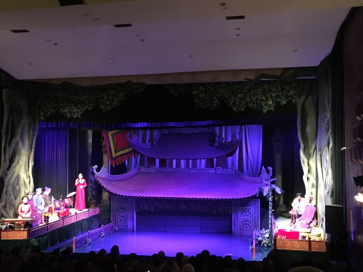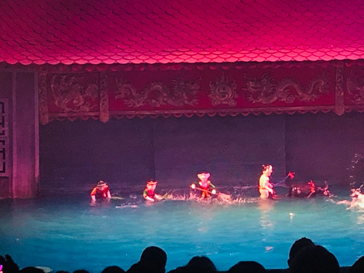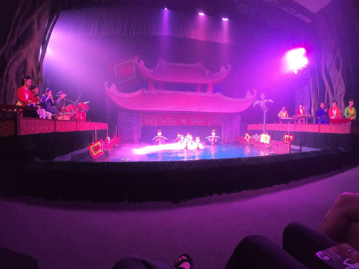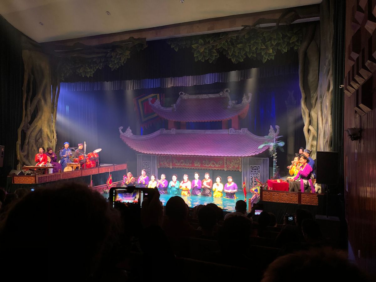 17時半頃の回を見ました。会場はそんなに大きくないので満席でした。欧米の方が多く、上映中うるさかったです。人形劇自体は所々ベトナム語のセリフがあるもののほとんど音楽で物語が出来てるので言葉が分からなくてもなんとなく理解は出来ました。ただ、前もって少しベトナムの生活文化等を調べて行った方がもっとおもしろく感じたかもしれないと後悔してます。その後夜ご飯に行きます。日本語の通じるレストランでコース料理でしたがかなり量が多くて全然食べられなかったです。初めから全部を食べようとすると途中から全く入らなくなってしまったので少しずつ食べれば良かったと思いました。15時頃ハノイに着く便で来たので初日を無駄にせず済んで良かったかな。当日券はほとんど買えないらしいので日本から前もって予約しておいて良かったです。