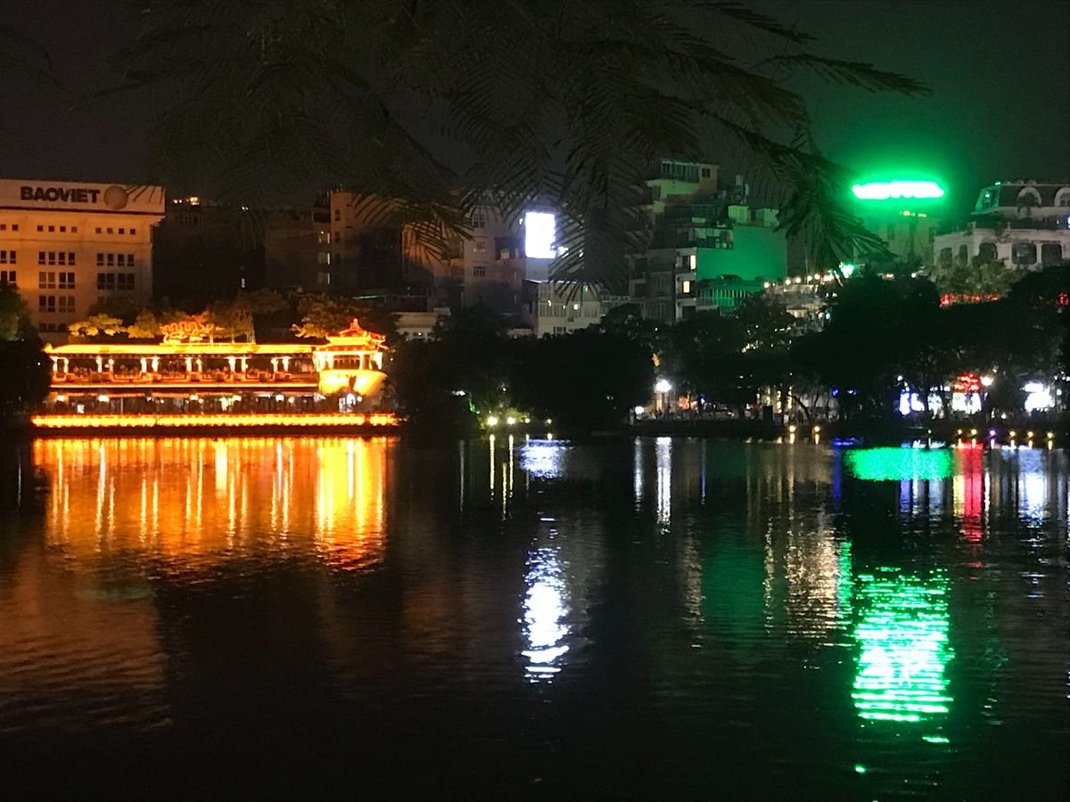 会場は中心部から歩いて行けますので、夕暮れのホアンキエム湖を眺めながら