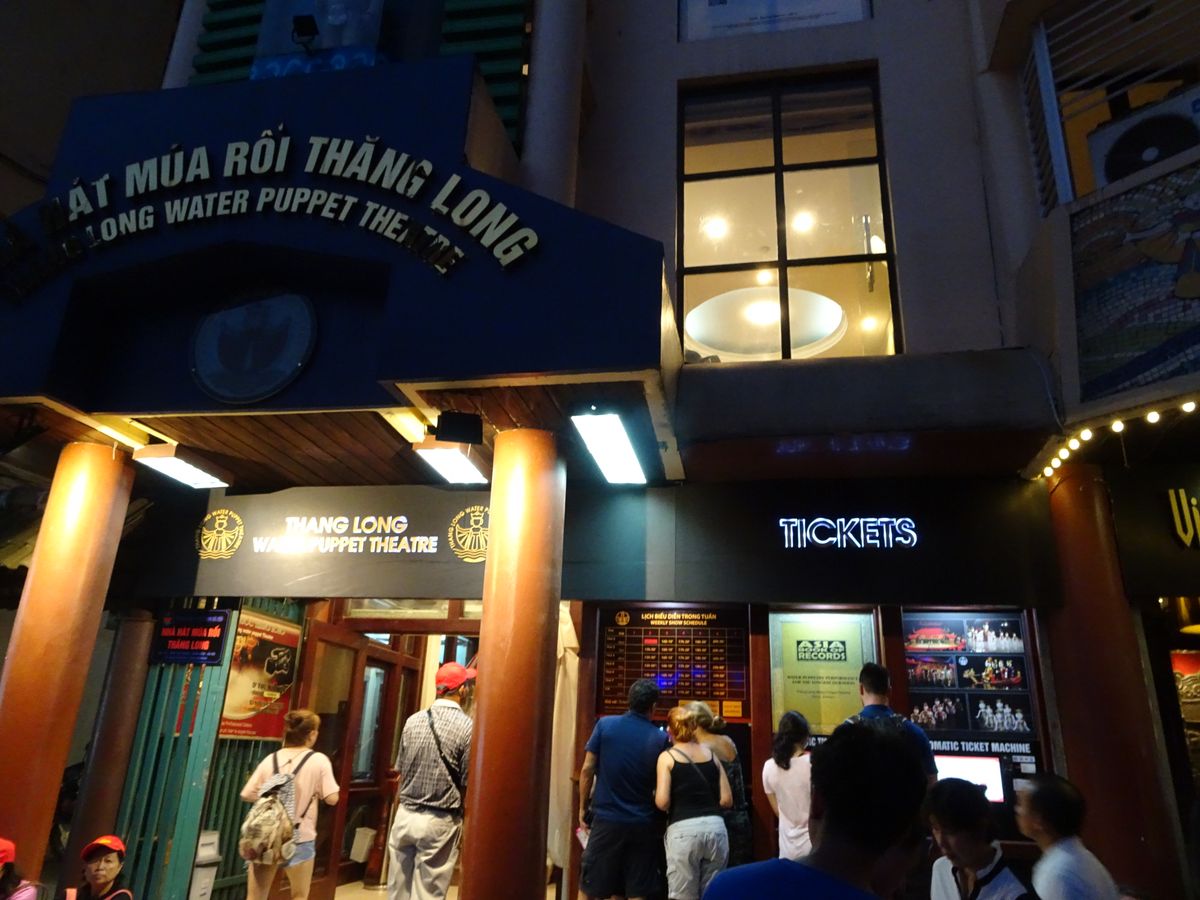 水上人形劇の催行会社がサザンブリーズ。前日に参加したハロン湾ツアーはTNK&ATPトラベルだったため、人形劇のチケットの受取方法が心配だったので、サザンブリーズに事前に問合せたところ、ホテルに届けるとのこと。その通りに前日夜に届けていただいたので心配ありませんでした。チケットには料金10万ドン(約500円)と印字されており、ツアーで払った料金よりも、はるかに高いですが、窓口に買いに行く手間や時間、それに確実にチケットを確保することを考えると、少々お高くても納得です。夫婦二人で参加しました。座席はツアーグループ客が座る後方の席でしたが、客席の傾斜が大きいので、前の人の頭に隠れて見にくいということはありません。17時05分開場、17時20分開演、18時10分終演でした。