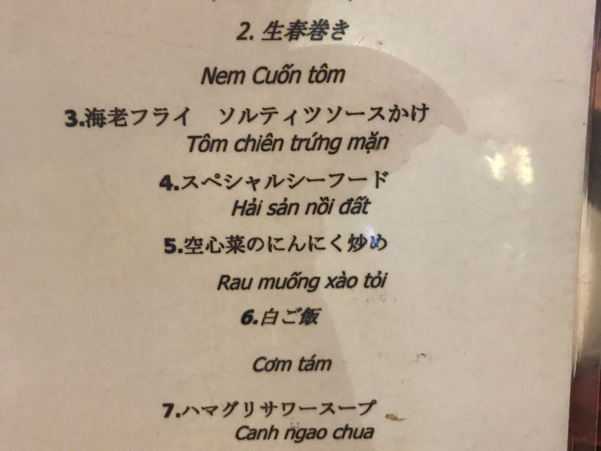 夕飯はマムというベトナム料理屋でした。観光客向けのお店なのか日本語のメニューがあり、日本語も少し通じました。味付けは観光客向けのように感じましたが、ベトナム料理に慣れていない私には丁度良く、とても美味しかったです!