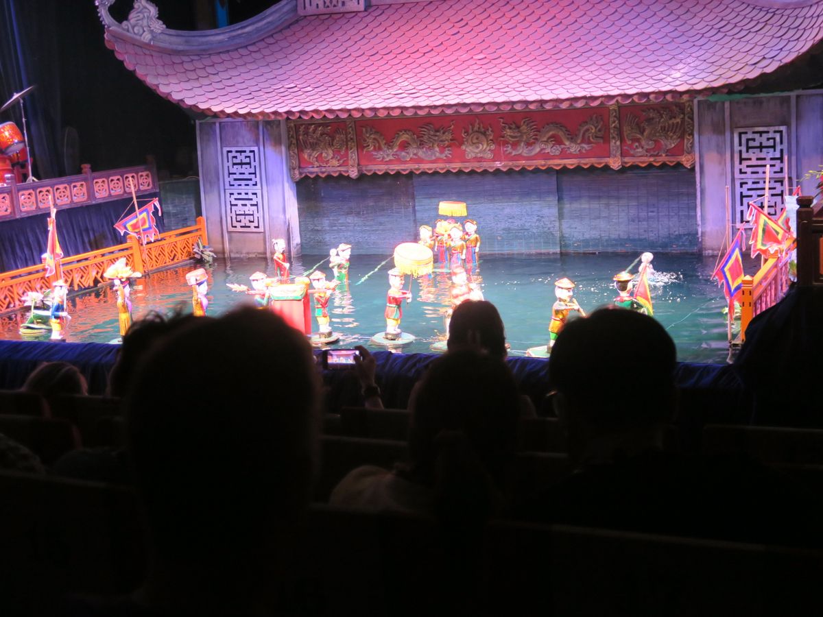 元々の予約は現地のSouthern Breeze と言うエージェントの確認で17:20からの水上人形劇の予約が取れたということで確定していましたが、当日行ってみたら劇場側で勝手に転売されたとの事で1時間あとの劇まで待たされました。他の大手エージェントの団体ではエージェント手配の翻訳機が貸与されていましたが、それが無いので内容が全く判らず、これでは意味がないなあと思いました。