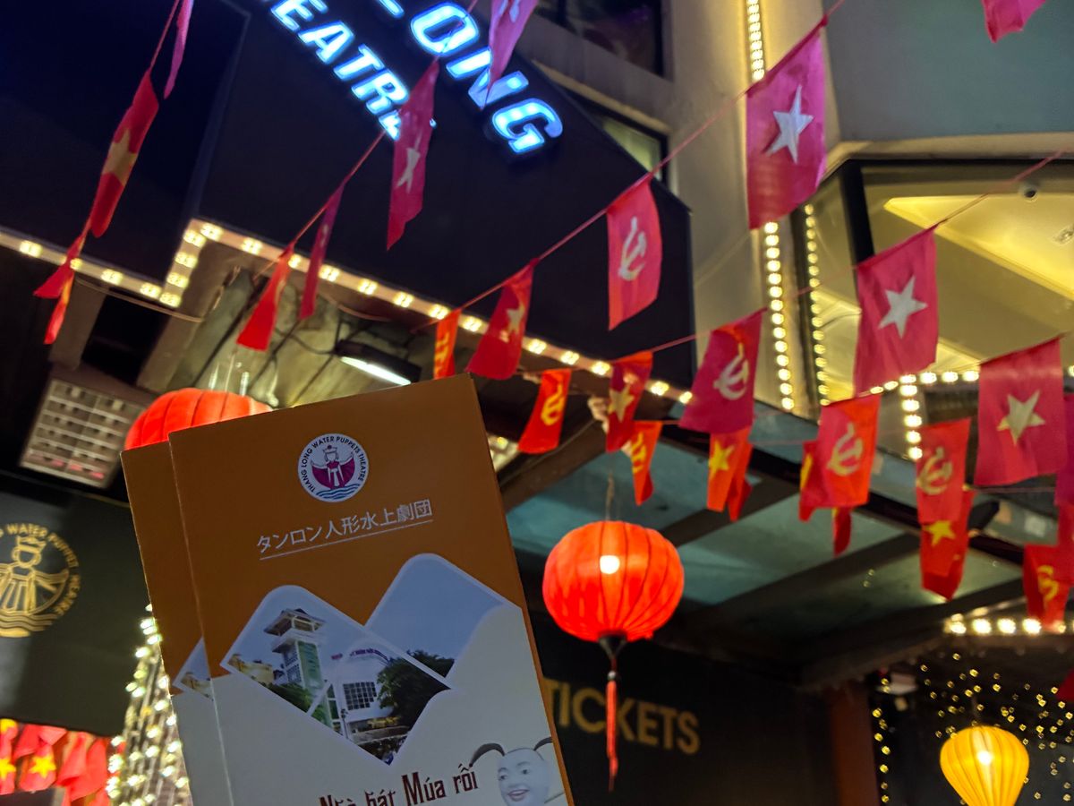 水上人形劇を万博のデモイベントで見て以来、本場で見てみたいと思い参加しました。1話5分程度が10話ほどあります。演奏者もライブですし、とても良かったです。ぜひ最前列で鑑賞してください。ハノイに来たらオススメです。ただ、ホアンエキム湖の横にあるのですが、人やバイクが雑然としており、入口が分かりにくいです。案内には30分前に近くにある旅行社でチケット交換してから、入場してと案内されているのですが、交換場所がありません。チケット売場の方に聞いても、ここじゃないとしか教えてもらえず、案内係らしき人に尋ねると、10分前にチケットを持って来て交換する人が来るから待てとの事。他の国の方々もわからず聞いてたので、案内看板を出すべきですね。そういう配慮や準備が全く整備されていないのが、今後の課題かなと思いました。