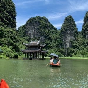 綺麗なステーションワゴンでの移動でした。2歳の娘連れでしたので、(座席からトランクに手が届くので)荷物が直ぐに取り出せるワゴンタイプは非常に有難かったです。運転手さんと会話はありませんでしたが、乗り降りの際はドア付近に来ていただき娘の事を気にかけてくれました。運転もとても安心出来る安全運転をしてくれました。ツアーガイドのクエンさん(女性)は日本で働いていたこともあるとのことで日本語も聞き取りやすかったですし、道中での私達の質問にも答えていただき日本語ツアーにして良かったなと思っております。目玉であるチャンアン複合景観の小舟でのアクティビティはとても暑いです。傘は貸してもらえますが、水分(と日焼け止め)は必要ですのでお気をつけください。約2時間のアクティビィティ途中には買えないと思います。私達は夫婦2人(2歳の娘は座席数に入れないようでした)でしたので乗客4人乗りの船に乗り合わせにすることにしました。相席者はベトナム人の20歳前後の女性でしたが写真映えする箇所で一生懸命色々なポーズで写真を撮っており気づいたら2時間で終わる小舟でのアクティビィティが2.5時間かかっておりました。その子達は娘にも良くしてくれ私達夫婦は若いって良いね。くらいで何も思いませんでしたが、次の予定がある方や、さくっとアクティビィティを終わらせたい方は混載便では無くプラス料金をチケット売り場で支払ってプライベート船にすることをお勧めします。