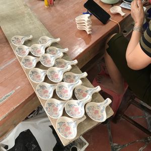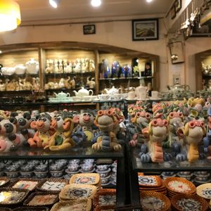 バッチャン焼きのお店では絵付けをしている場面を見学したり陶器を見て回りました。