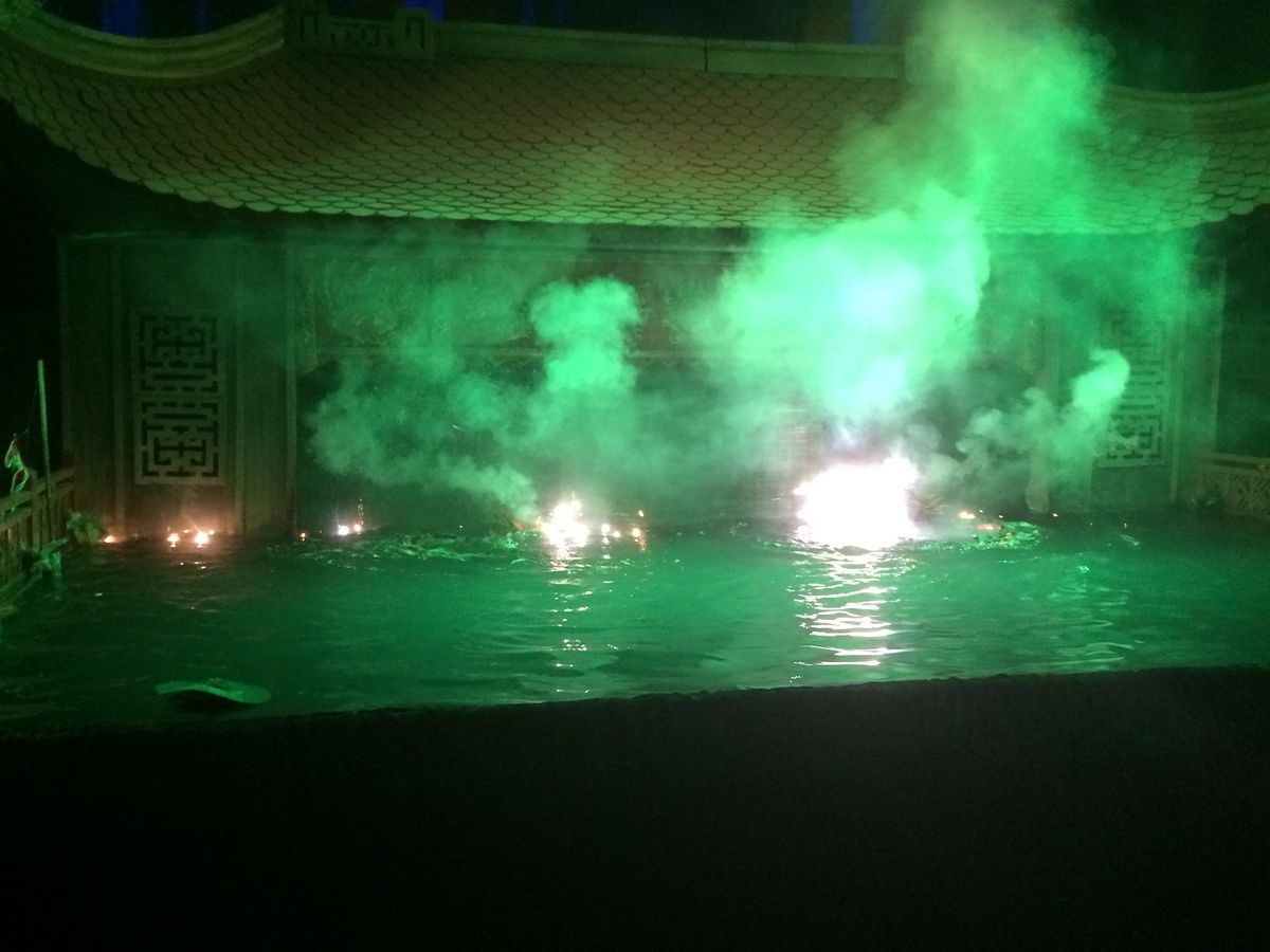 水上人形劇は、伝統的な雰囲気のある会場に音楽、煙や光等の演出も交えてとても幻想的な雰囲気で十分に楽しめました。