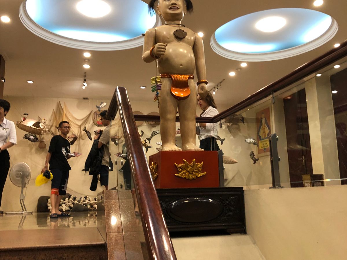 水上劇の後、タクシーを拾って、人気のレストランに案内してくれました。