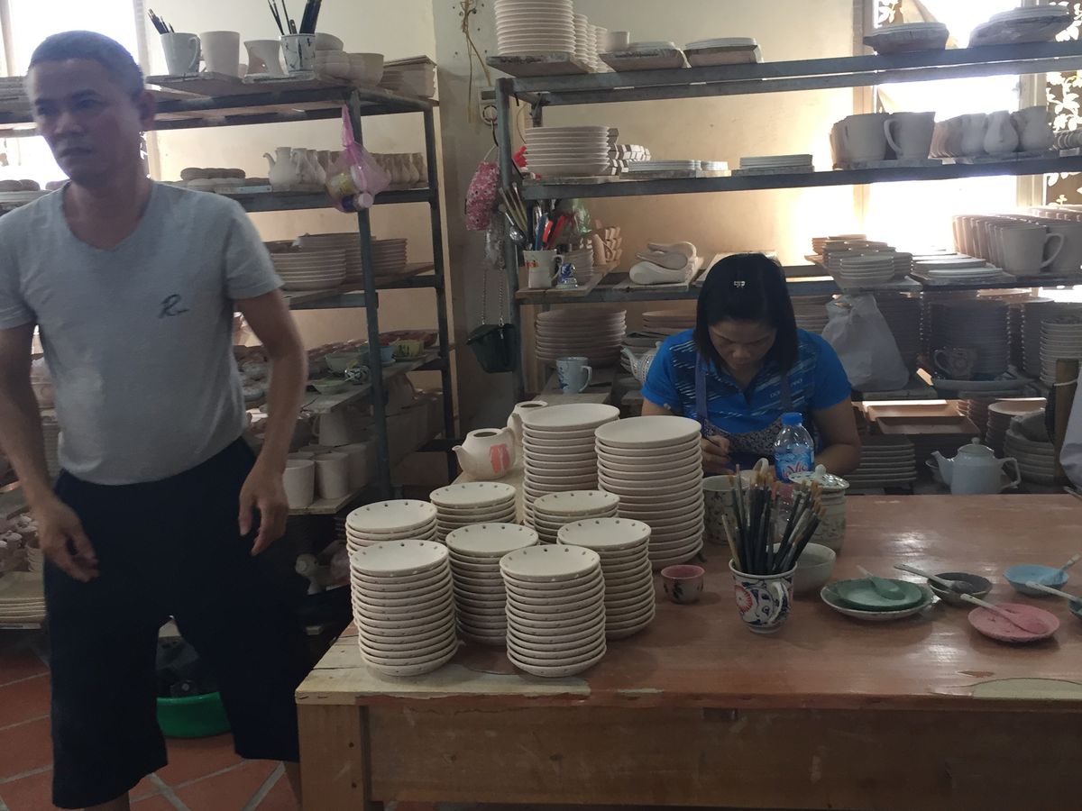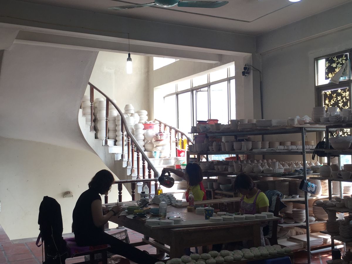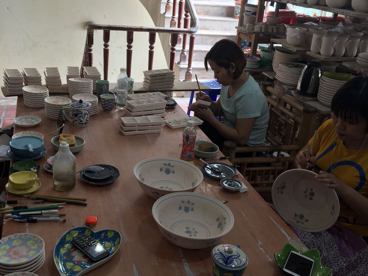 まず、最初にバッチャン村へ。ここでは絵付けや製造工程の説明を受けることができ、勉強になりました。ここのお店での購入は通常のお店より少々高いんだろうなーと予想してましたが、詳しく説明してもらったし、絵付けや製造など作業をしているところを間近に見ることができたので、買っても良いかなと思い、友人と一つずつ購入しました。