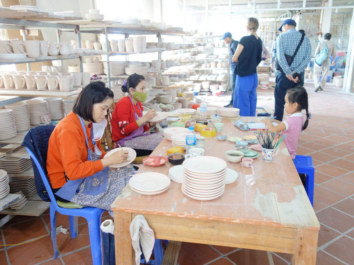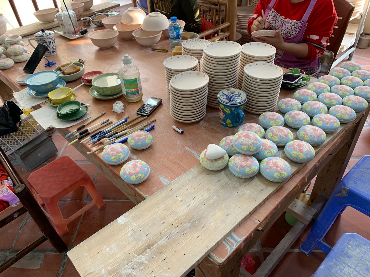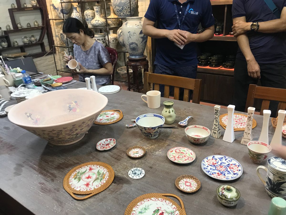 まず、最初にバッチャン村へ。ここでは絵付けや製造工程の説明を受けることができ、勉強になりました。ここのお店での購入は通常のお店より少々高いんだろうなーと予想してましたが、詳しく説明してもらったし、絵付けや製造など作業をしているところを間近に見ることができたので、買っても良いかなと思い、友人と一つずつ購入しました。