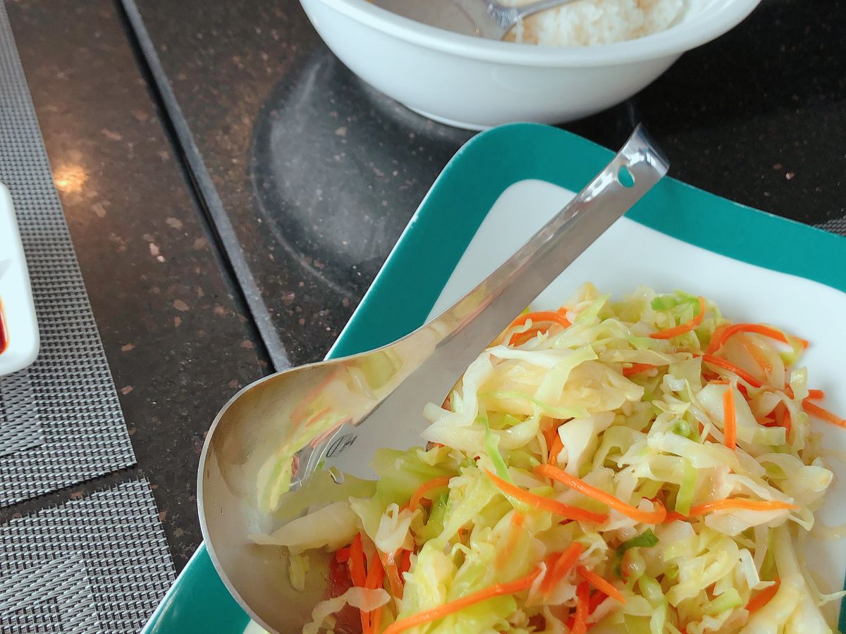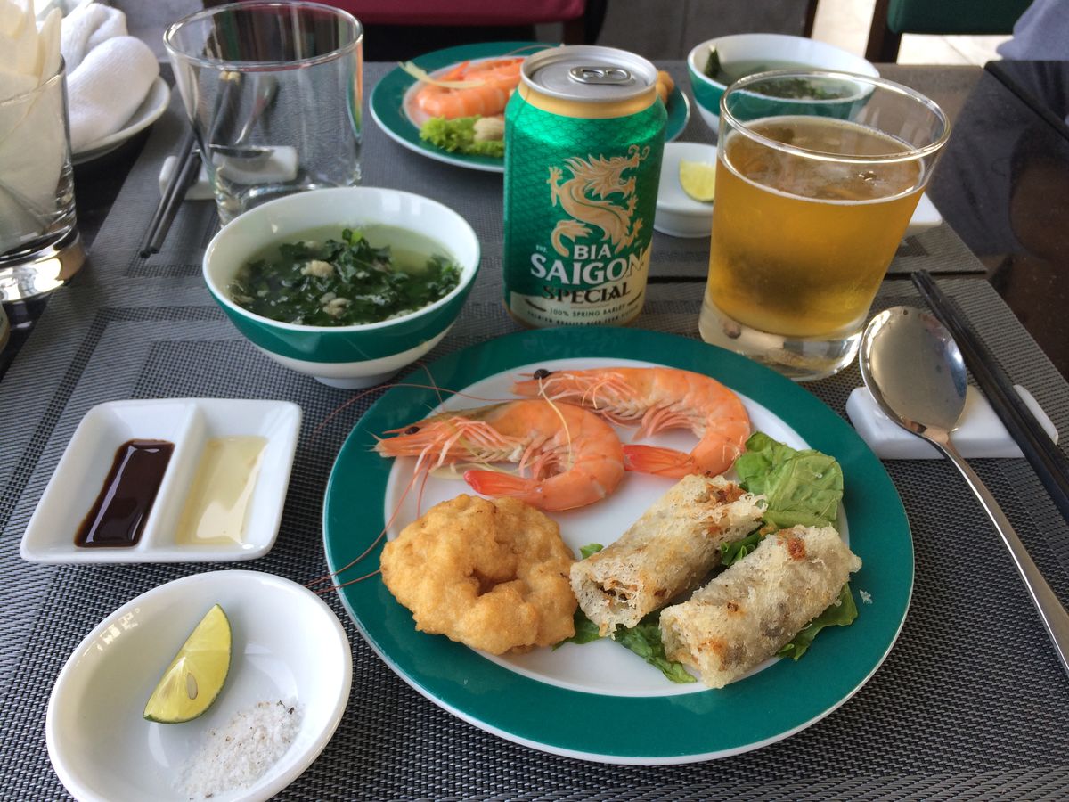 12:30ごろハロン湾到着。13:00出航。出港と同時に食事が出されます。ツアー参加者と大皿をシェアしました。