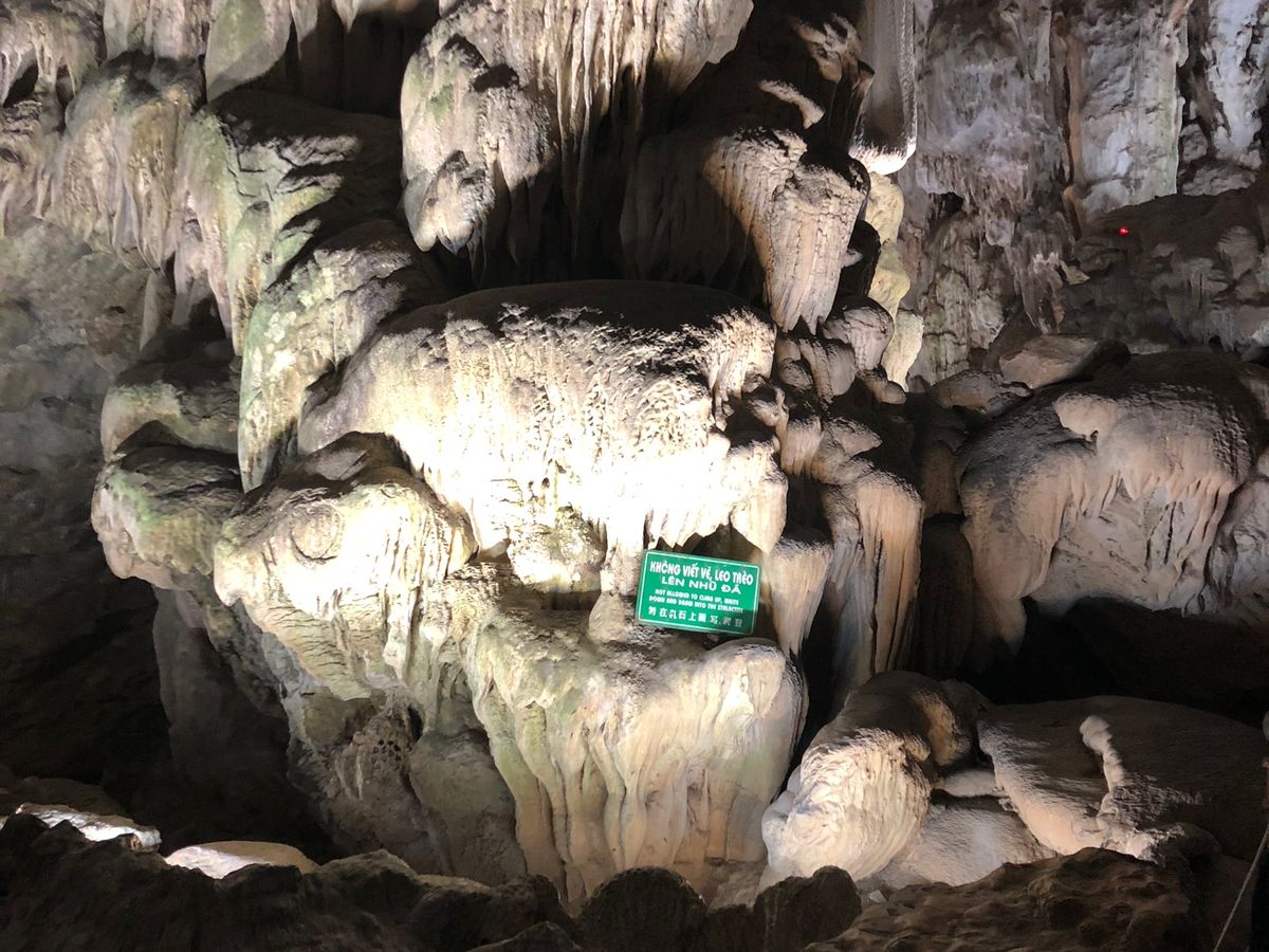 船から一旦降りて、島の鍾乳洞に入ります。年月を感じさせる神秘的で不思議な空間でした。中も蒸し暑いのが、さすがベトナムです。