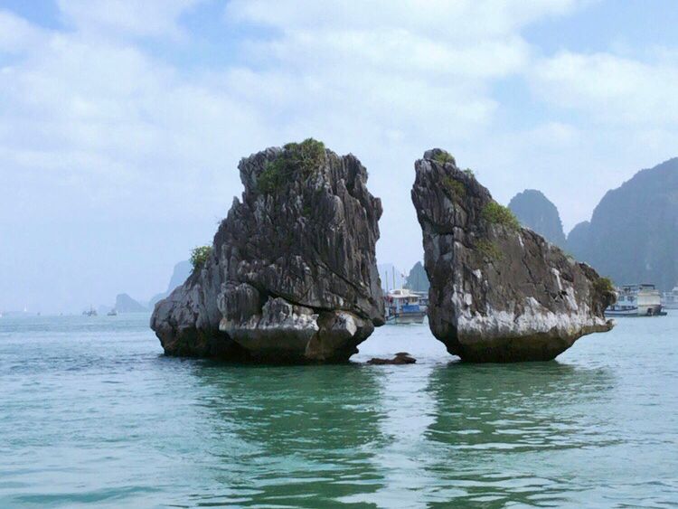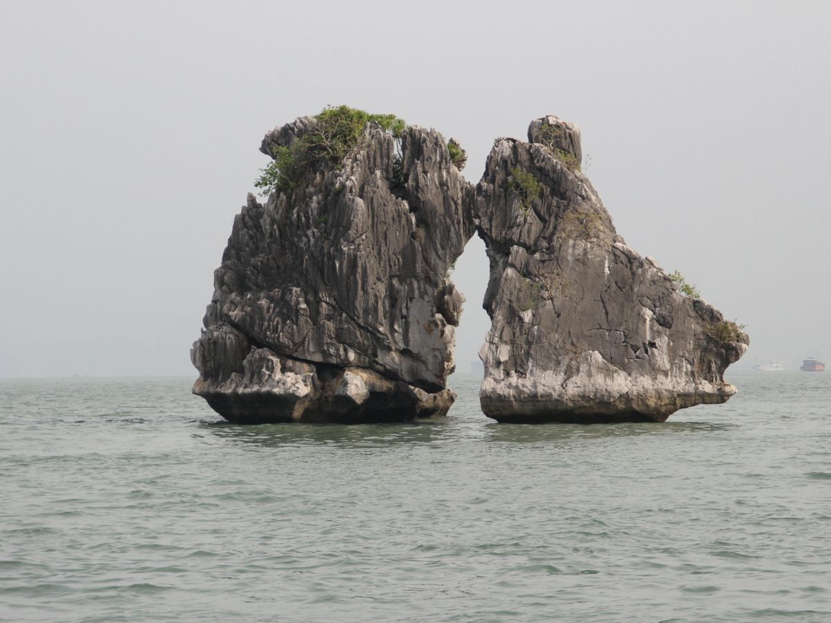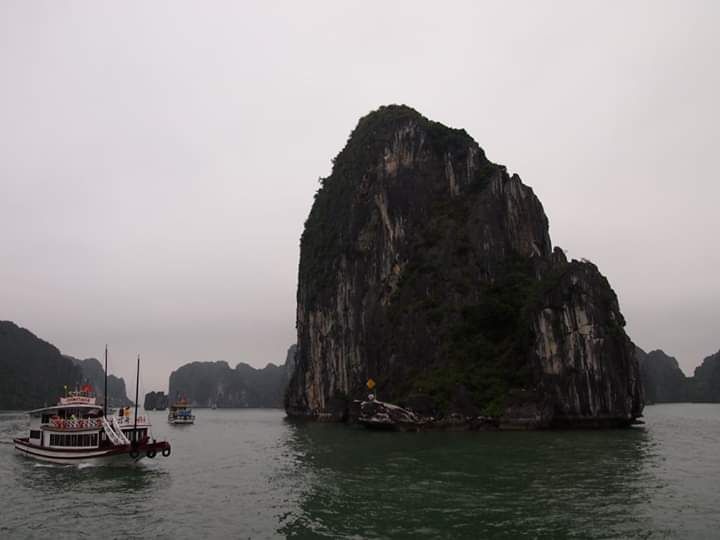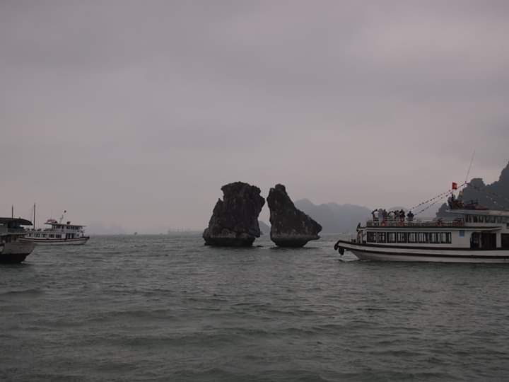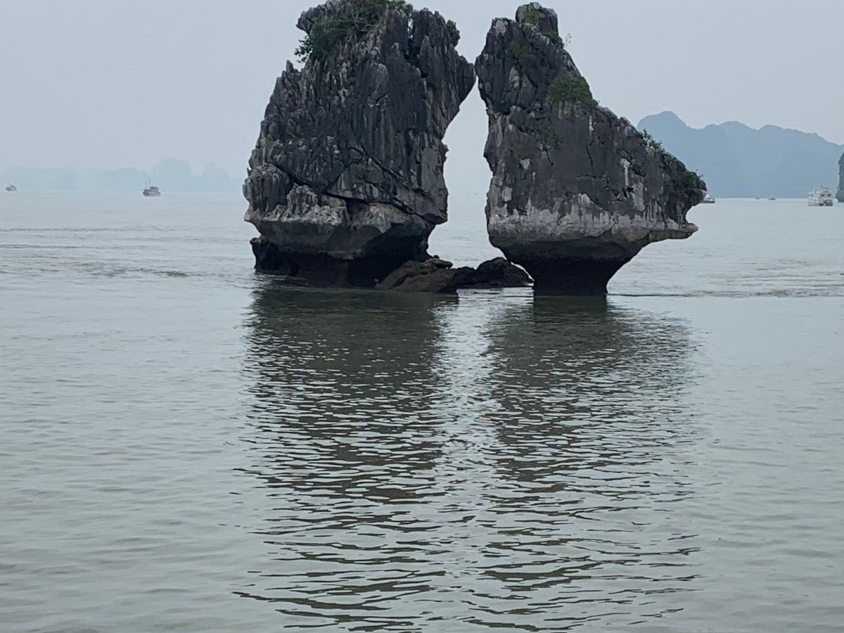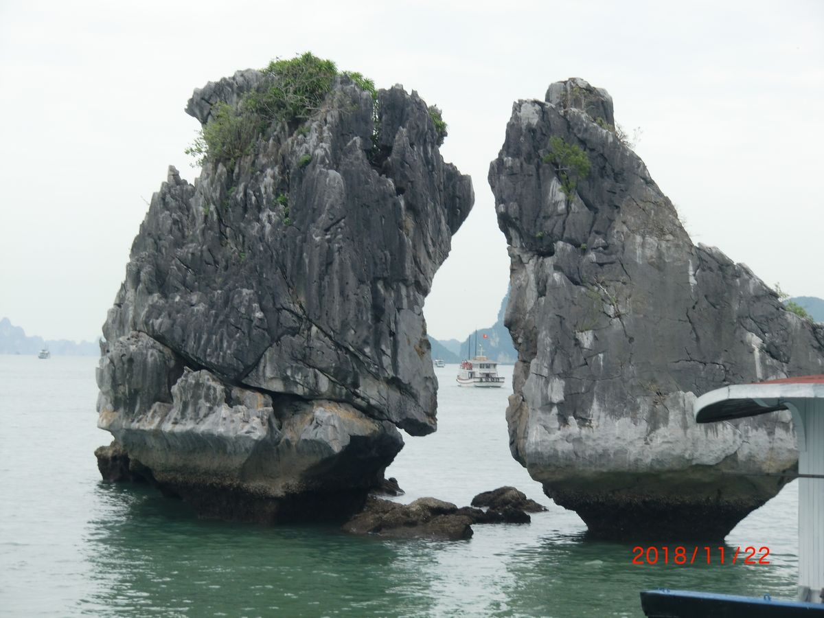 ハロン湾クルーズは行った日は白く靄がかって幻想的だと思いました。個人的にはゴリラ岩が笑えました。