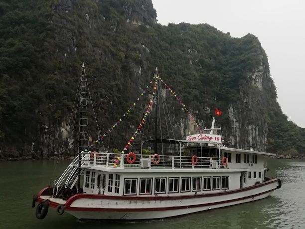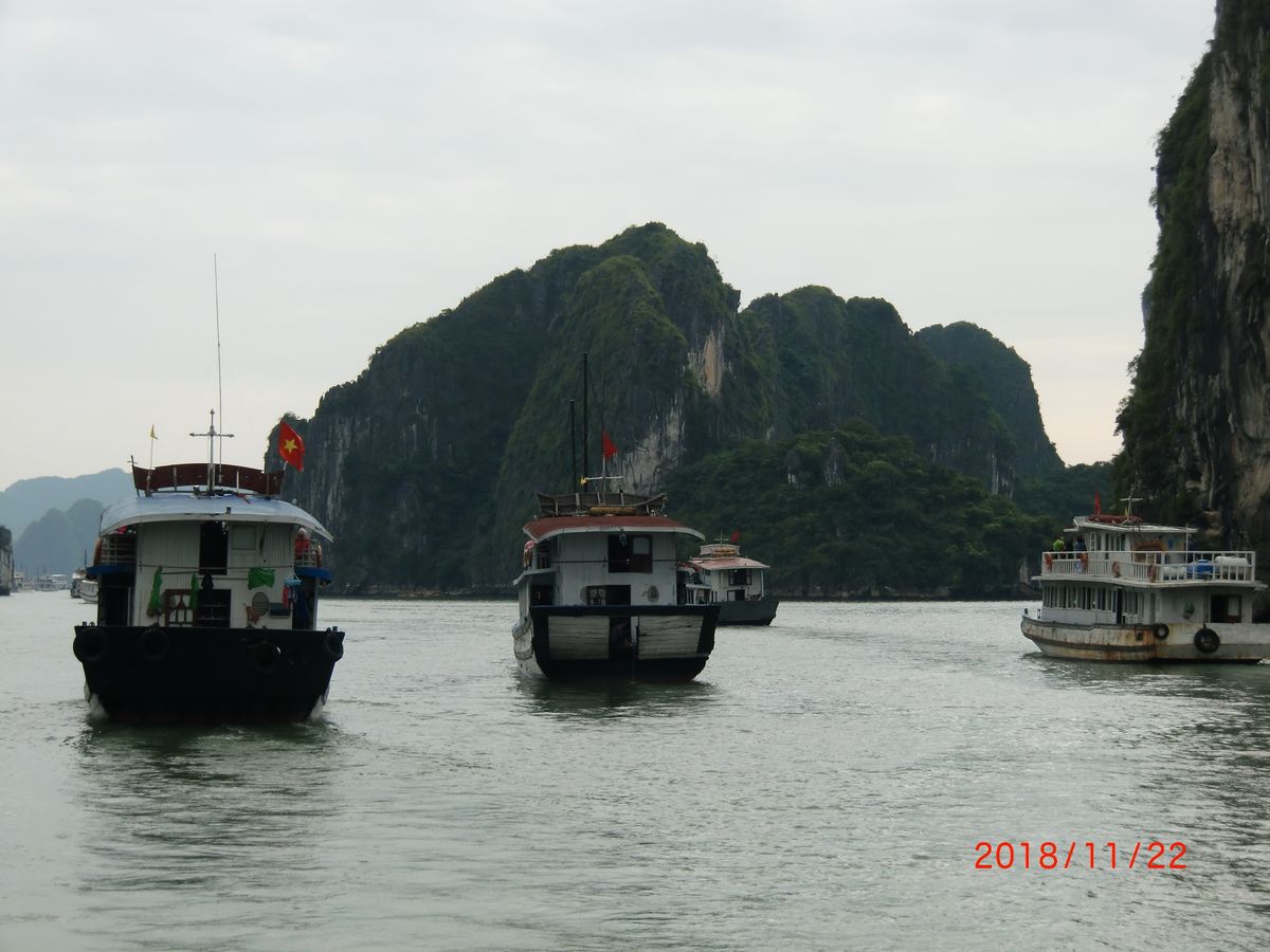 ハロン湾へは、そこから3時間。途中休憩もあり、あっという間に到着。船でランチ。思っていたよりずっと美味しく完食。漁師さんが船を連結。新鮮なカニや貝など追加料金で調理してくれて面白かったです。鍾乳洞は本当に広く、これだけでも行った価値ありました。移動が多く疲れますが、感動しました。