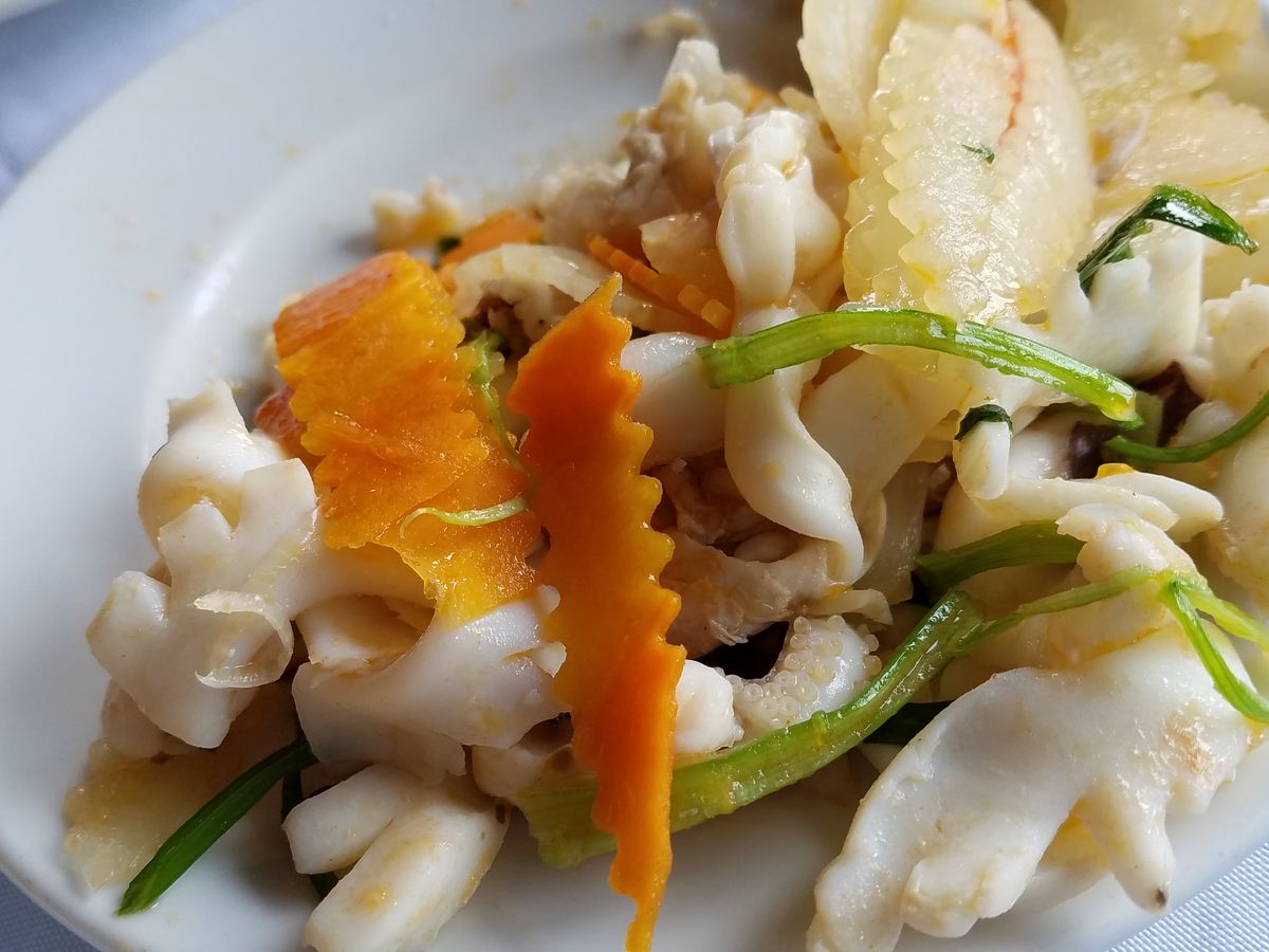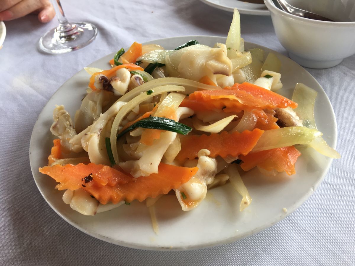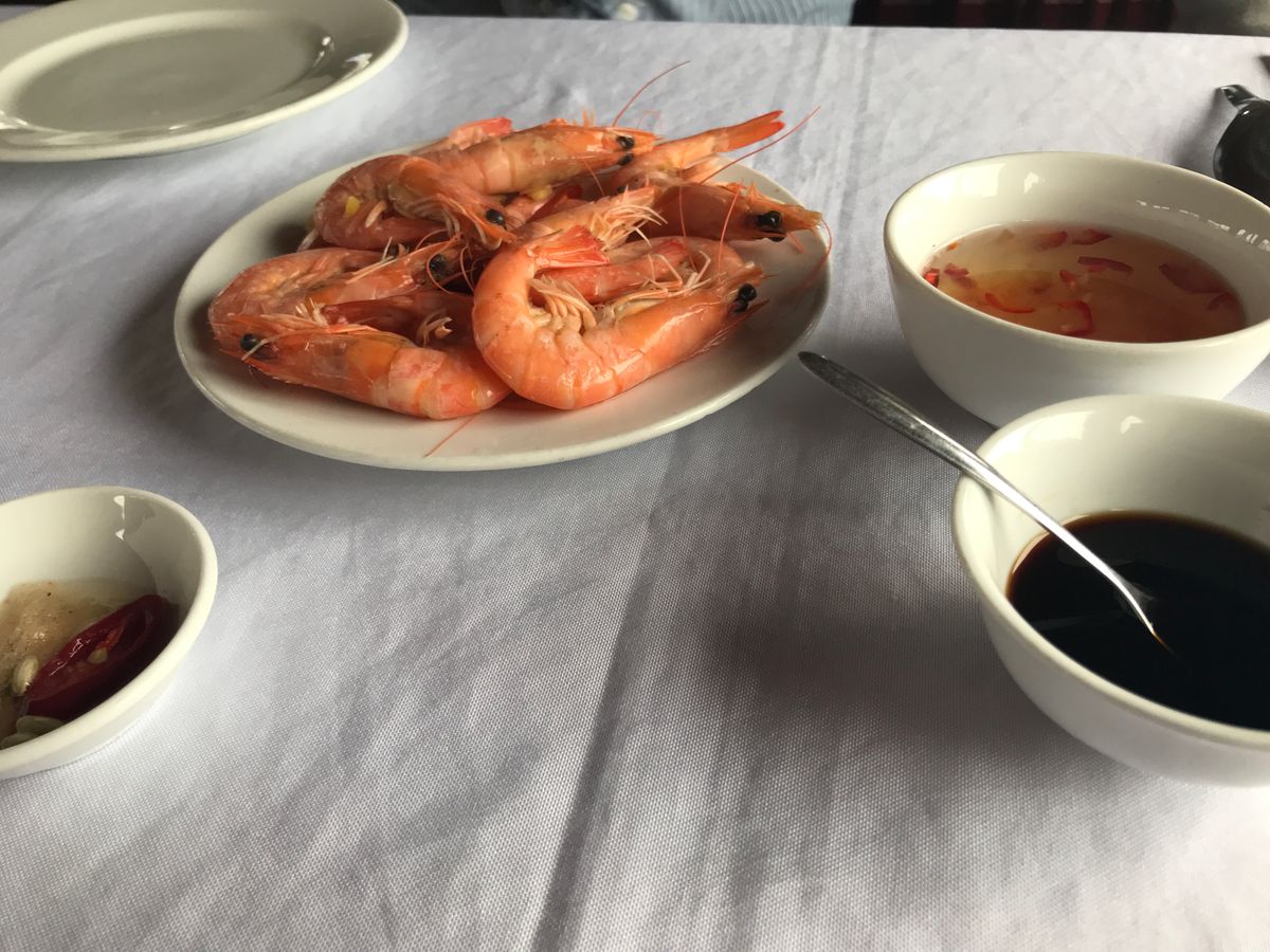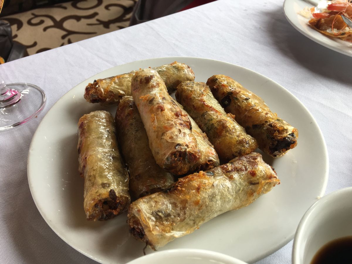 料理はイカのさつまあげ、春巻き、スープ、エビの蒸し焼き(?)など、どれも美味しかったです。なぜか最後にご飯が二種類出てきて、全て食べきることができませんでした。