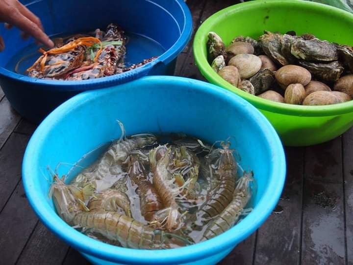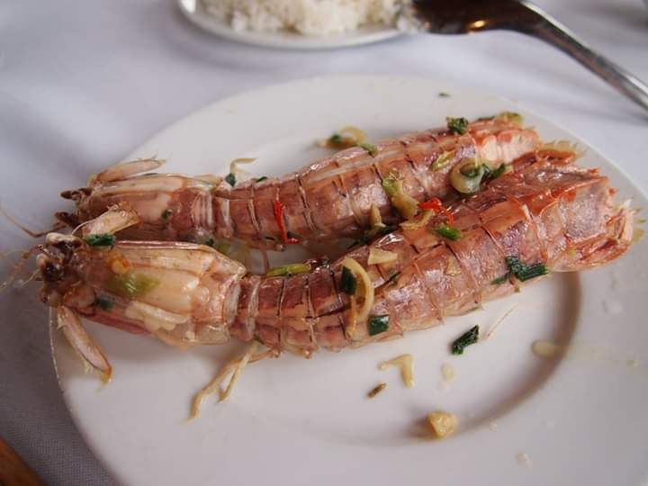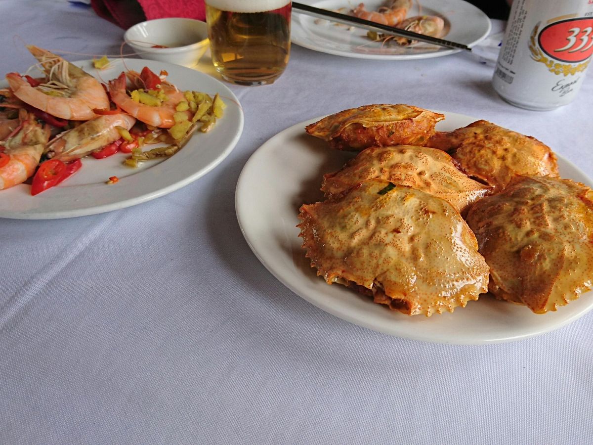 食事はシーフードです。蒸しエビやイカの炒め物、魚の揚げ物等…カニのすり身の揚げ物がとても美味しかったです。飲み物は別途会計です。