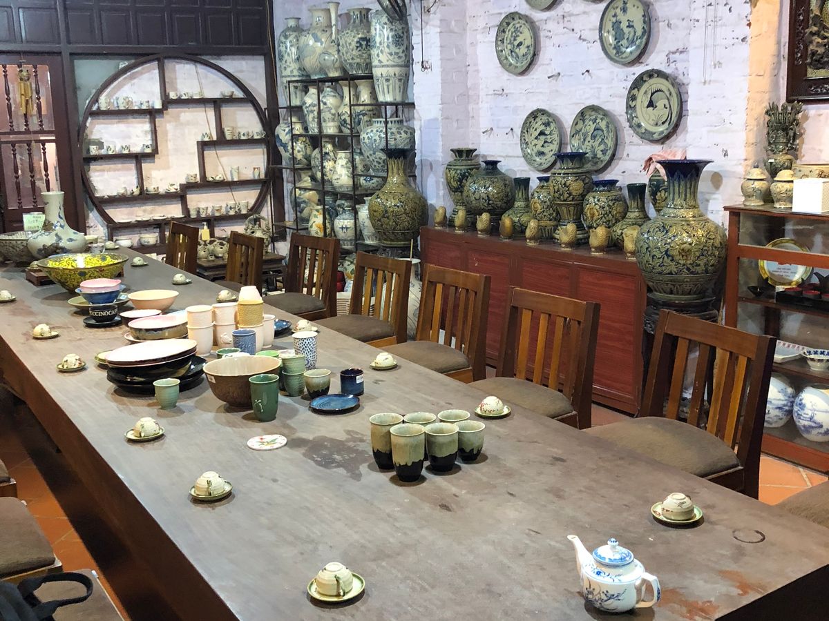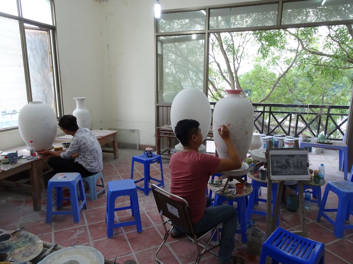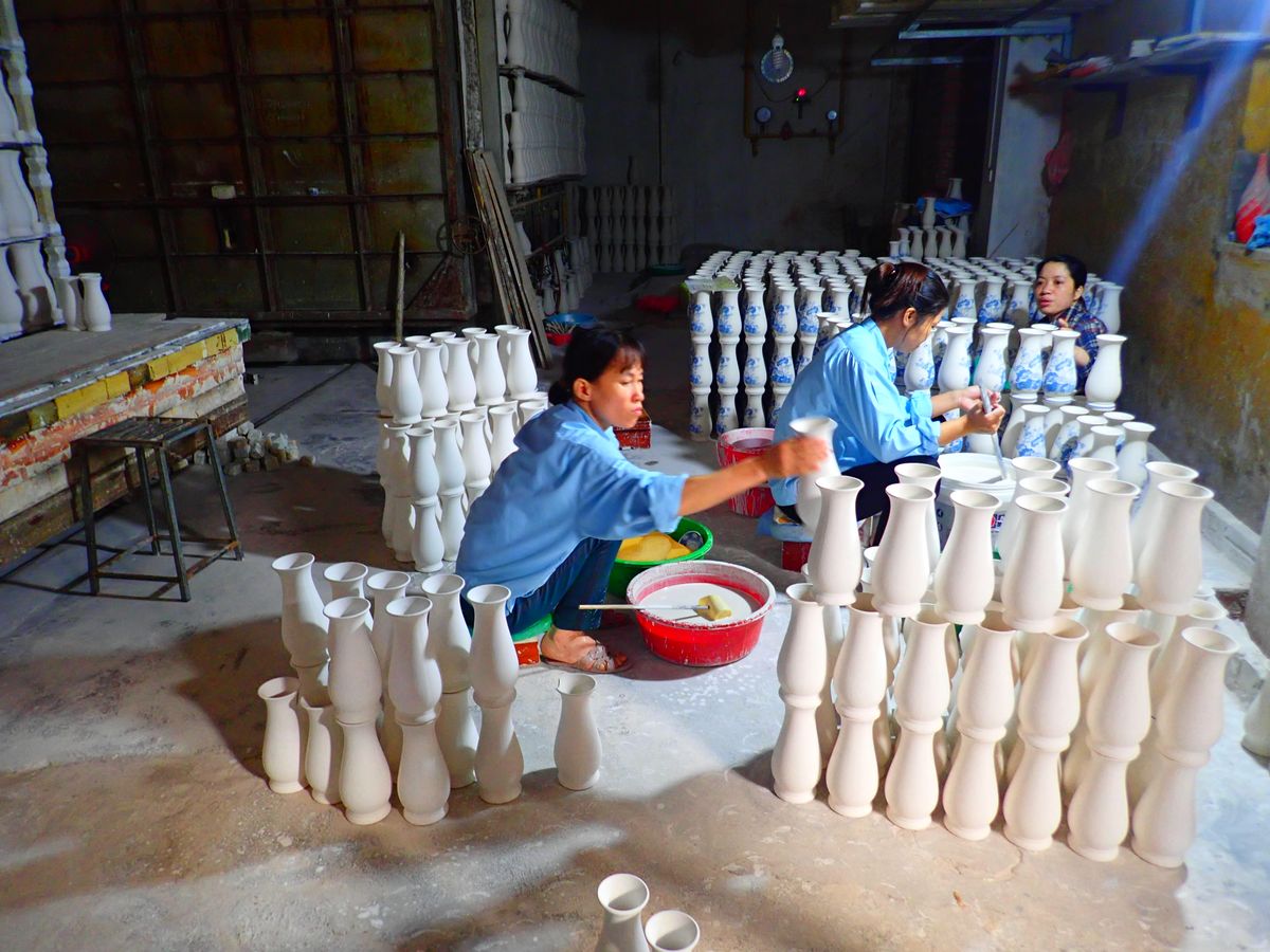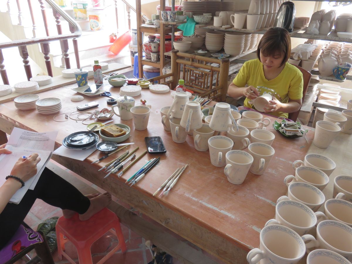 ツアーの最初の目的地、バッチャン村へはハノイ市内のホテルから車で約30分。バッチャン焼を作っている工房を訪ね、絵付けや型を作る工程などを見学しました。絵付けはとても繊細で、綺麗でいつまでも見ておきたいと思う程でした。