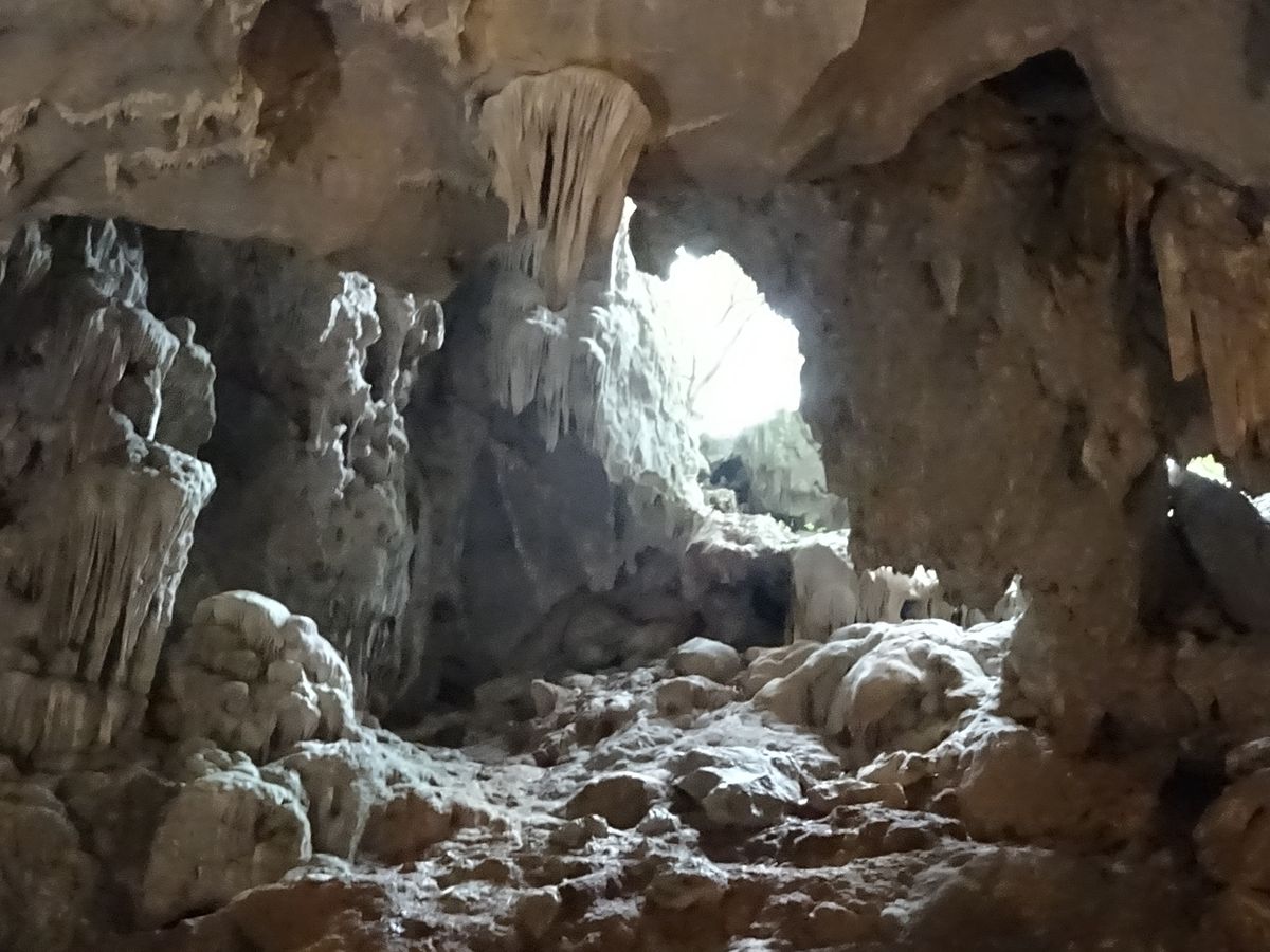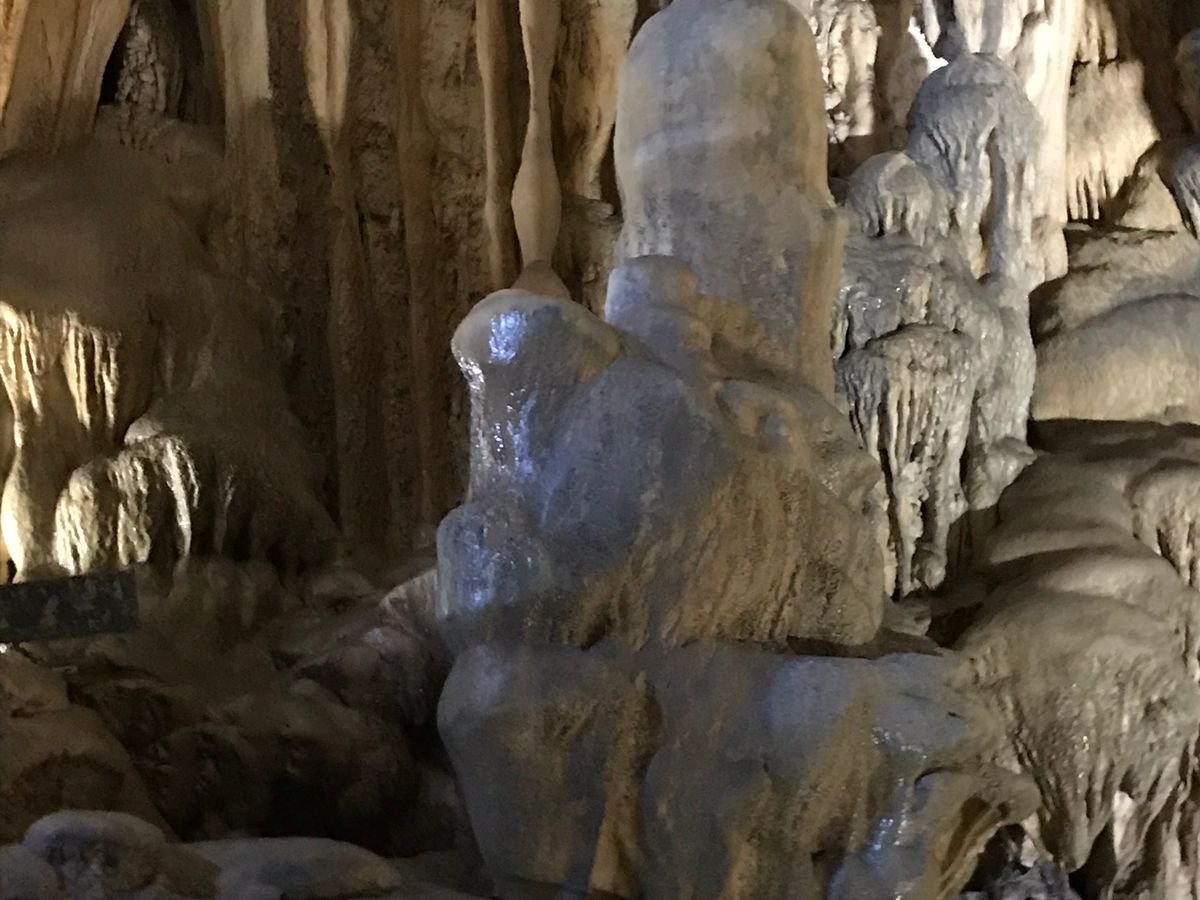 途中、洞窟にも立ち寄りました。成長がとまっている洞窟らしく、ジメジメと湿った感じが無く、カラッとしていて、逆に年輪?のような岩肌の模様の細かい部分まで見ることができ、新鮮でした。