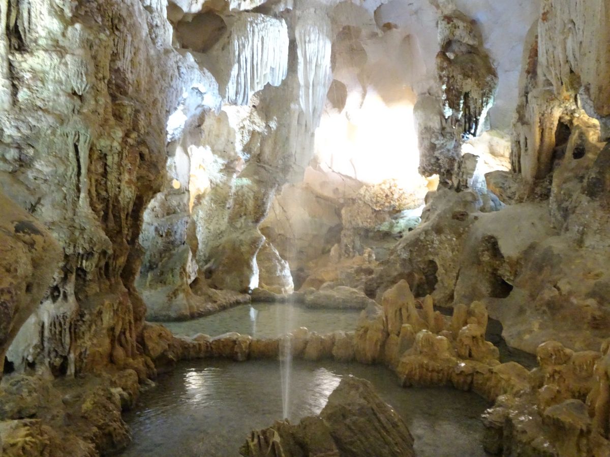 クルーズの途中で鍾乳洞。鍾乳洞を見慣れてる日本人には余計な感じ。激混みで中も暑いです。