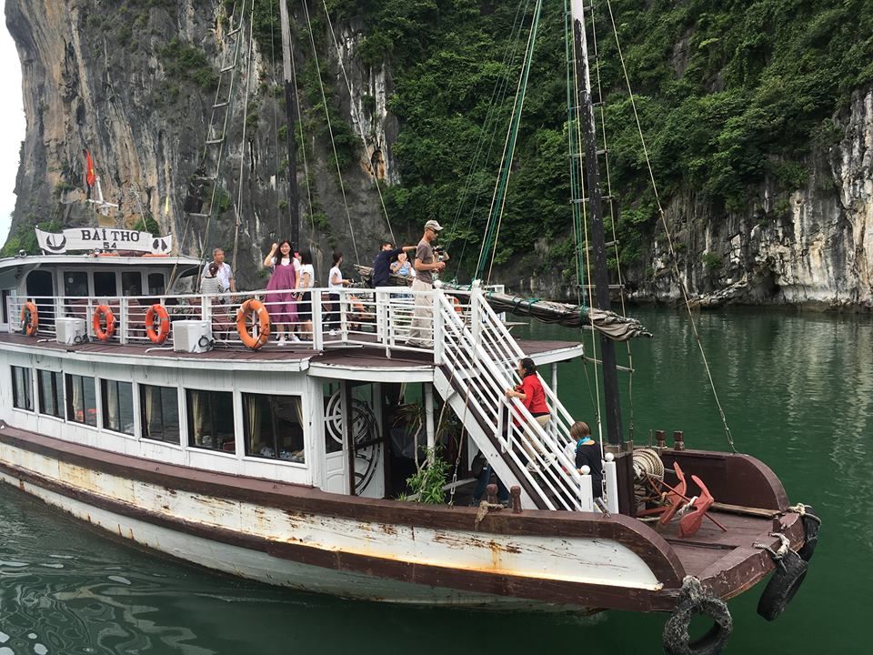 ハノイからバスに揺られること4時間、ハロン湾観光の拠点となる船着き場に着きました。中型の船で出航、船内でのベトナム料理?を楽しみながら、目の前にある圧巻の景色に見とれました。途中、岩のクイズも出しながら説明するなど楽しく観光ができました。