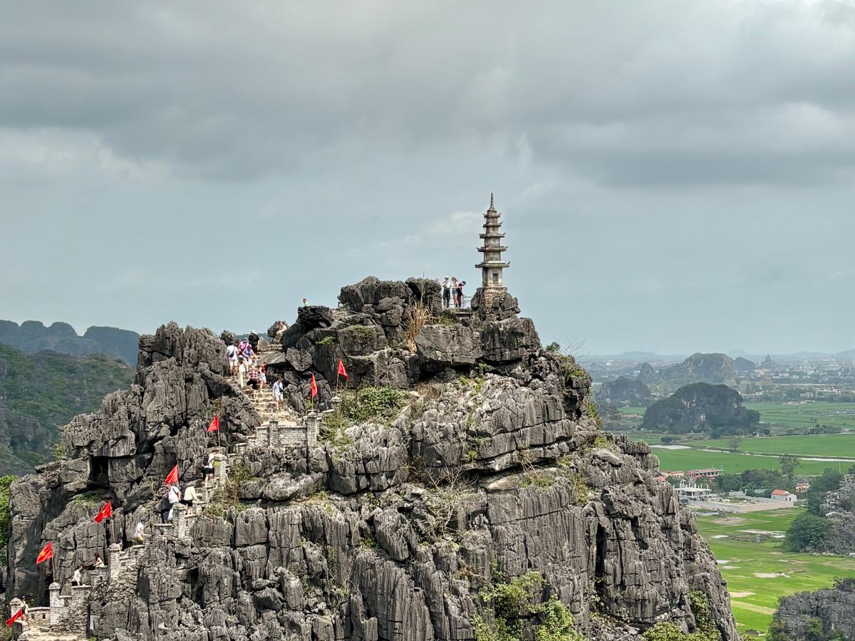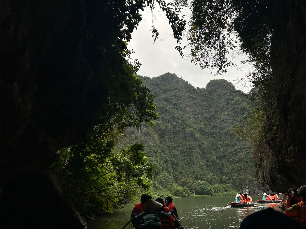 ハノイからビジネスクラス張りの立派なリムジンバスに揺られて2時間で到着。途中の休憩で立ち寄るお土産屋のトイレも清潔。最初はムア洞窟から。口コミで結構な登山と書いてあり、同行した幼稚園児向けに抱っこひもを持参。案の定使うことになった。想像よりも急な勾配だったが登っている時間は30分ほどなのでそれほど苦ではない。昼食やサイクリングを挟んで後半の目玉は小舟の川下り。2時間もあり、耐えれるかと心配したものの、どこも美しく飽きない。帰りは爆睡している間にハノイに着き夕飯へ。まったく期待していなかったが、期待を大きく裏切り立派なブンチャーが登場。